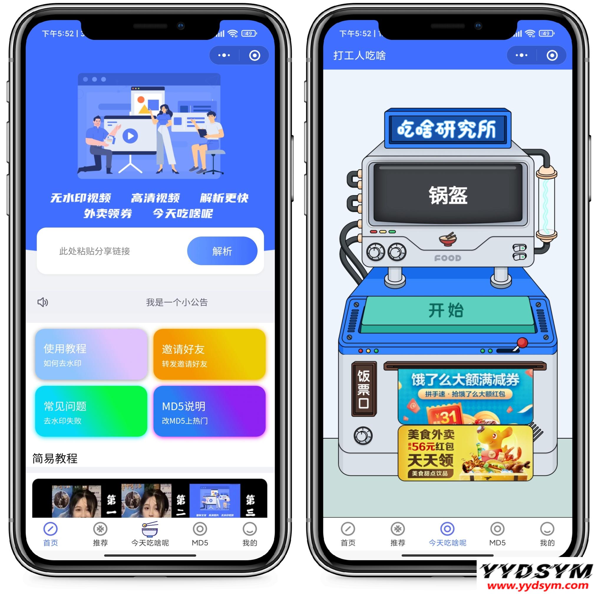 当前位置: 首页源码大全在线工具正文 简介: 最新版去水印+外卖CPS小程序源码+视频搭建教程 本版本为目前最新版本 修复上个版本后台用户列表加载失败问题 新增轮播图跳转小程序 新增外卖CPS系统 详细安装教程->进入QQ群:778639596 ->搜索名称查看 图片: 去水印小程序外卖小程序 收藏 链接