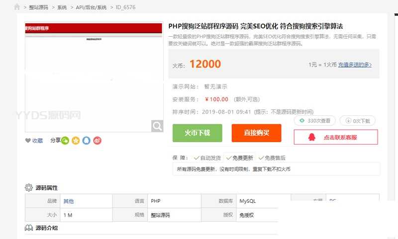 轻量级的PHP搜狗泛站群程序源码,完美SEO优化符合搜狗搜索引擎算法,无需任何采集,只需要放关键词就可以。