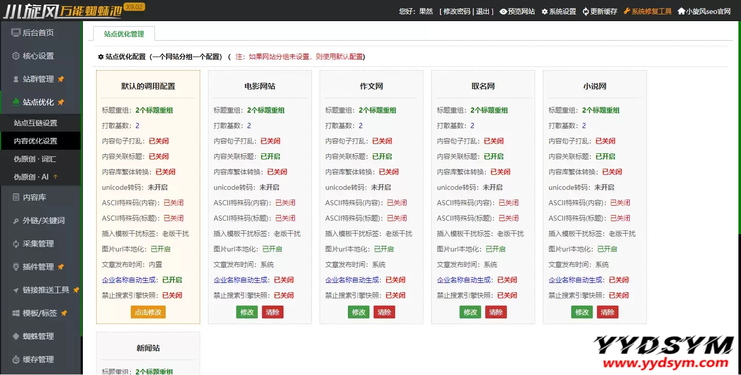 增加分组定制网站名称库、栏目库、句子库、文章库、图像库、企业介绍等。