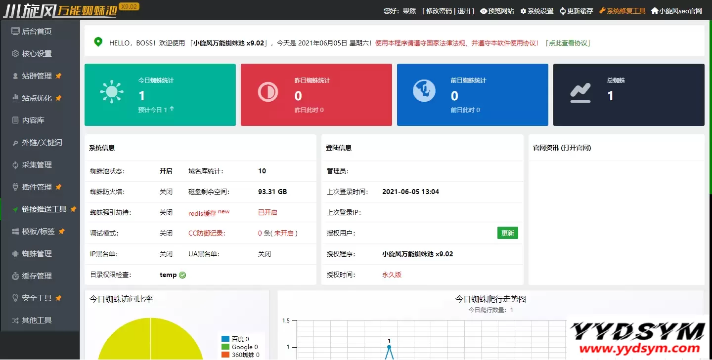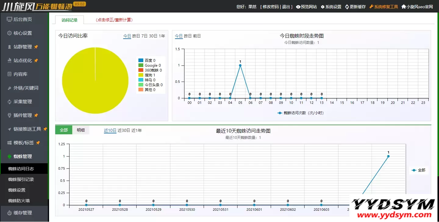 打开蜘蛛缓存时,缓存优先表现给游客(确保收录与游客一致)。