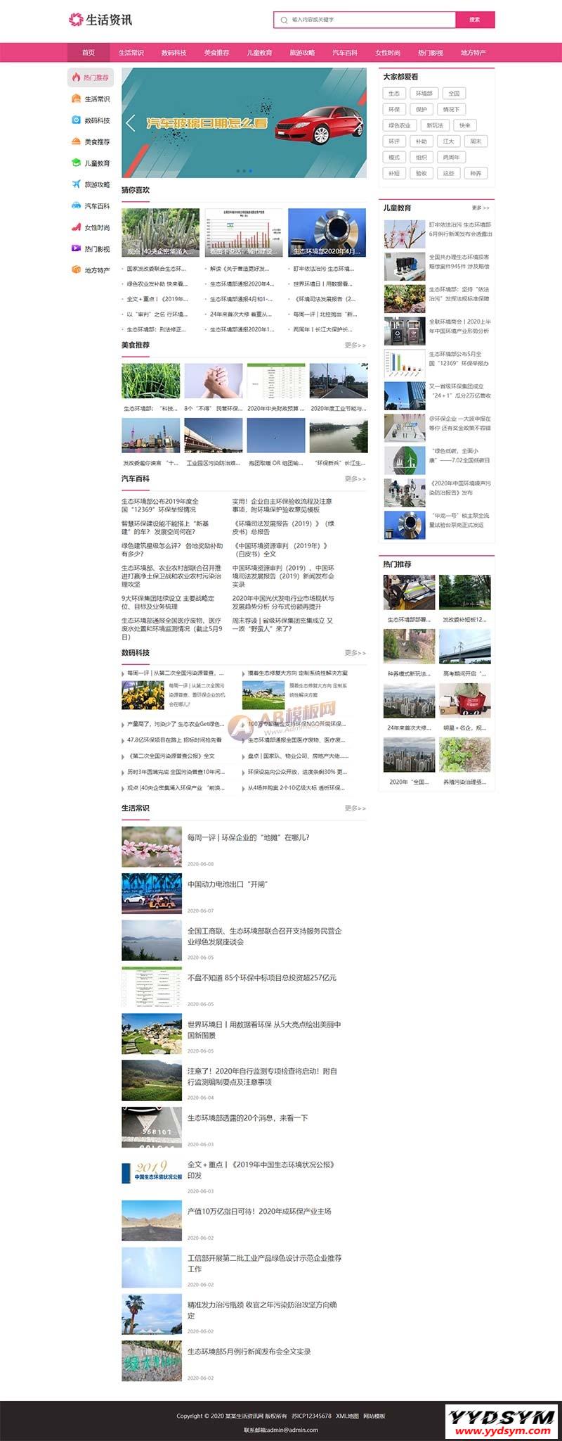 (PC+WAP)生活资讯百科门户类网站pbootcms模板 粉色生活门户网站源码下载pbootcms内核开发的网站模板,该模板适用于生活资讯网站、百科门户网站等企业,当然其他行业也可以做,只需要把文字图片换成其他行业的即可;自适应,同一个后台,数据即时同步,简单适用!附带测试数据!友好的seo,所有页面均都能完全自定义标题/关键词/描述,PHP程序,安全、稳定、快速;用低成本获取源源不断订单!