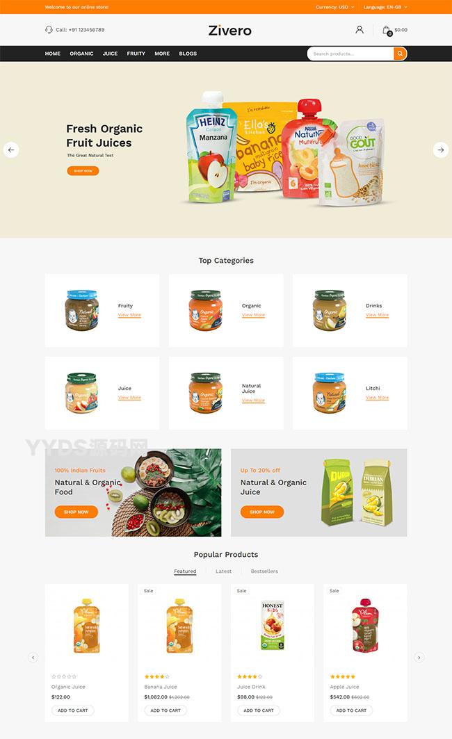 小清新果汁饮品商城网站模板