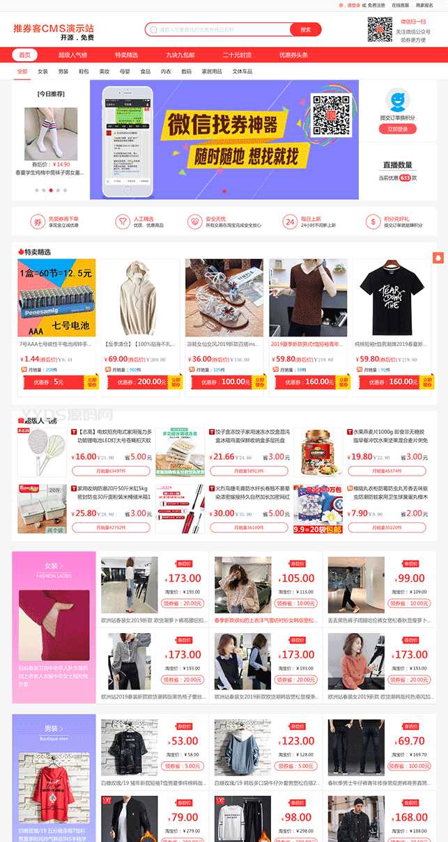 推券客CMS淘宝优惠券网站源码是一个以PHP+MySQL进行开发的PHP淘宝客优惠券网站。支持电脑站、手机站以及微信公众号查券。支持多级代理返利和阿里妈妈最新的渠道管理等功能。