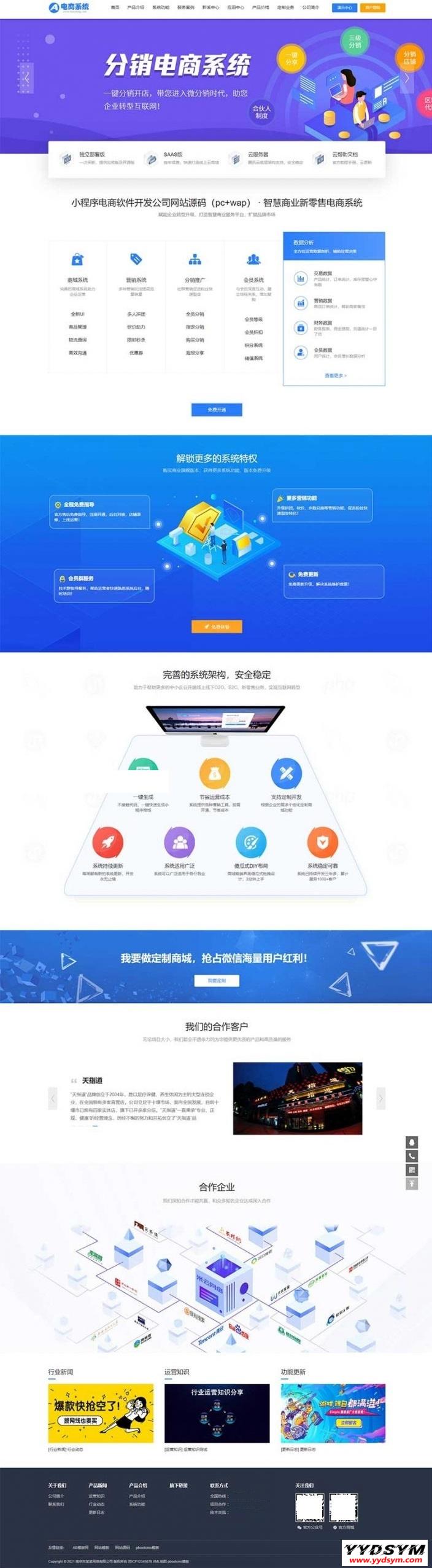 蓝色小程序网站pbootcms模板-小程序电商软件开发公司网站源码(pc+wap)