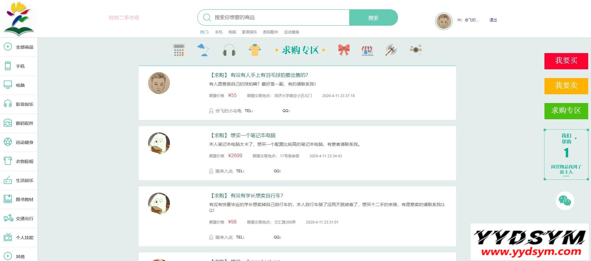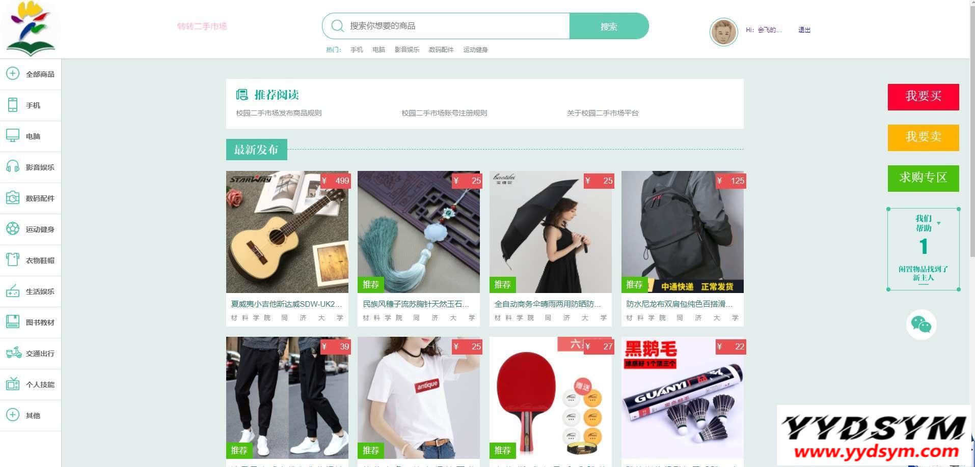 当前位置: 首页源码大全电子商务正文 简介: 校园转转二手市场源码分享,Java写的应用,改成本毕设啥还是挺不错的,mybatis-plus 和 Hibernate随心用 后台地址:/home/index/index 账号密码:admin/123456 前台地址:/system/login 图片: 二手交易系统校园二手系统 收藏 链接