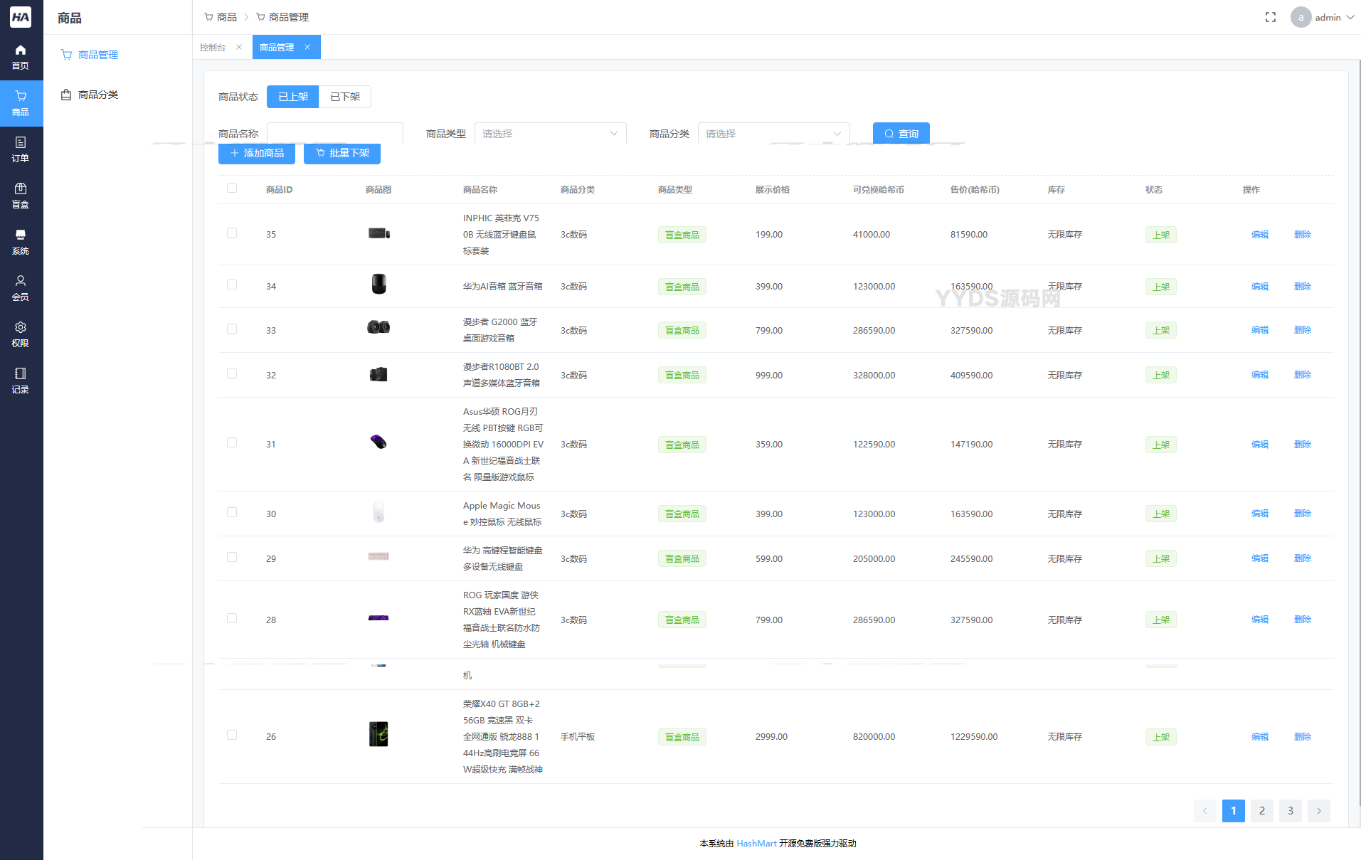 HashMart(哈希玛特)是首款开源的面向生产的高性能、易开发的盲盒系统。它包含:首页看板、商品管理、订单管理、盲盒管理、系统管理、会员管理、权限管理、记录管理,并且拥有完善的搭建使用手册和接口文档。是帮助您快速落地盲盒商城系统的不二之选。