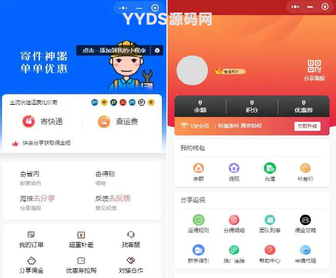 快递小程序,接入云洋/易达物流接口,支持选择快递公司,三通一达,极兔,德邦等,功能成熟