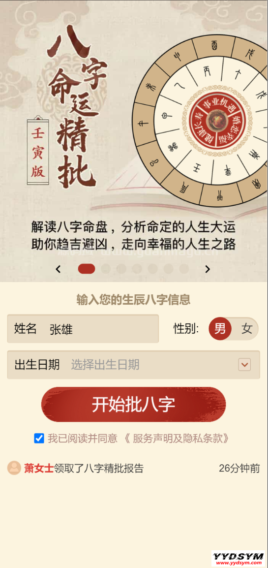 当前位置: 首页源码大全解梦占卜正文 简介: 八字精批付费测算系统,只要有人在线测算,就可以获得收入哦。是目前市面上最火的变现利器。看了一下,确实变现快,而且没啥技术难度,此程序无后台, 要改文件直接在源代码里面修改。感兴趣的自行下载研究学习。 图片: 八字付费测算八字测算八字精批 收藏 链接