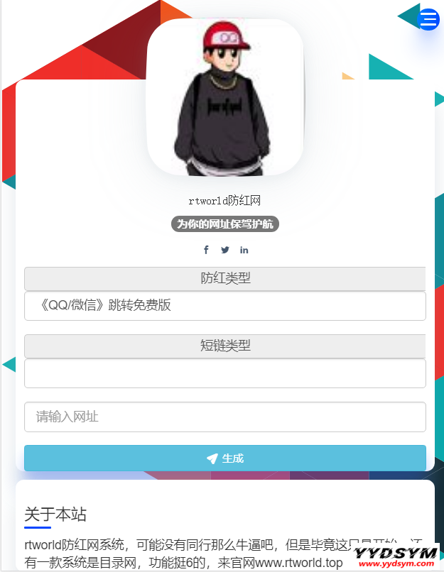 当前位置: 首页源码大全域名主机正文 简介: 1.本地域名防红(json/txt)类型 2.可以添加短链接 黑白名单 域名会员功能 环境: PHP 7.2最佳 上传源码到网站根目录,然后访问域名安装! 后台:http://你的域名/Manage/ 账户密码:admin/123456 图片: 域名防红系统 收藏 链接