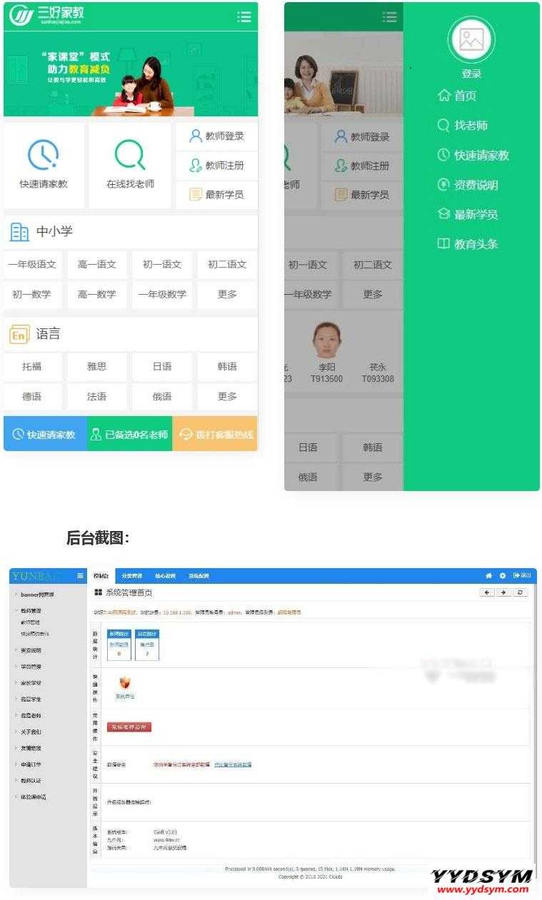 当前位置: 首页源码大全教育培训正文 简介: PHP源码一对一教育培训家教平台网站源码 PC+WAP手机版 一对一教育 家教系统源码,用户可以在线报名和找老师。老师可以注册账户发布信息。 图片: 培训家教网站源码家教平台网站教育培训网站 收藏 链接