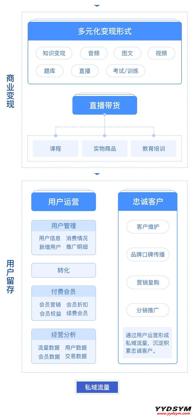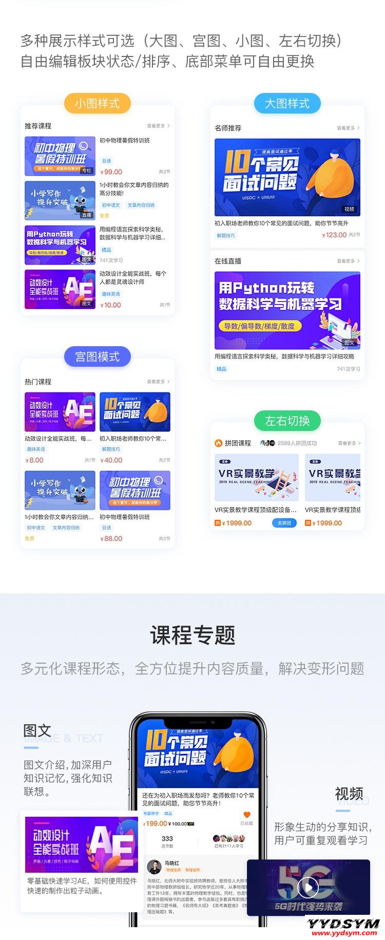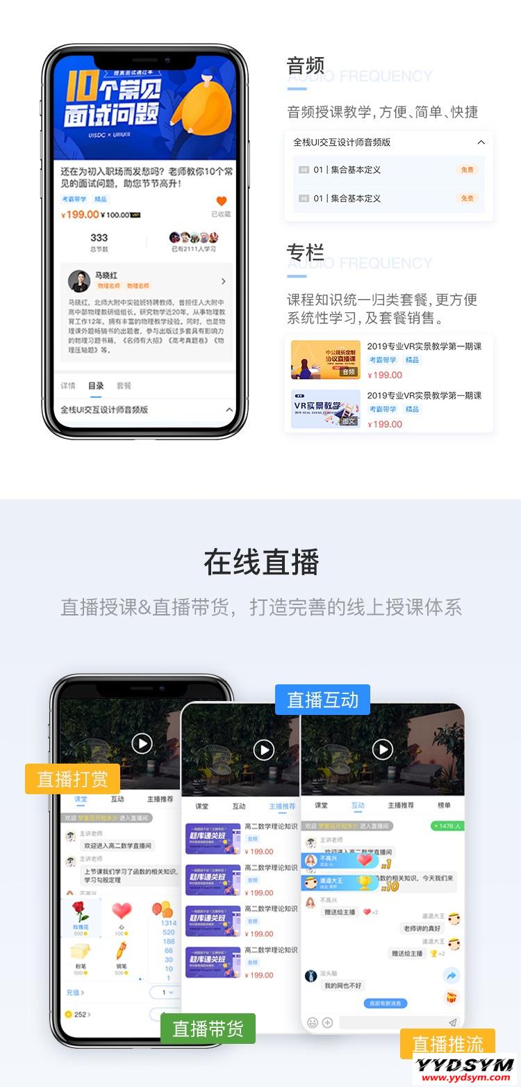 CRMEB知识付费系统其主要由课程系统、分销推广、付费会员、营销活动、支付、客服系统、文章管理、登录注册,微信模板消息通知等九大功能模块构成,囊括了在线教育及知识付费的大部分主要功能,支持在线推流直播、直播回放功能、录播功能、图文专题、音频专题、课程弹幕等重要基础功能,其源码全开源,无加密,完全适合企业二次开发。