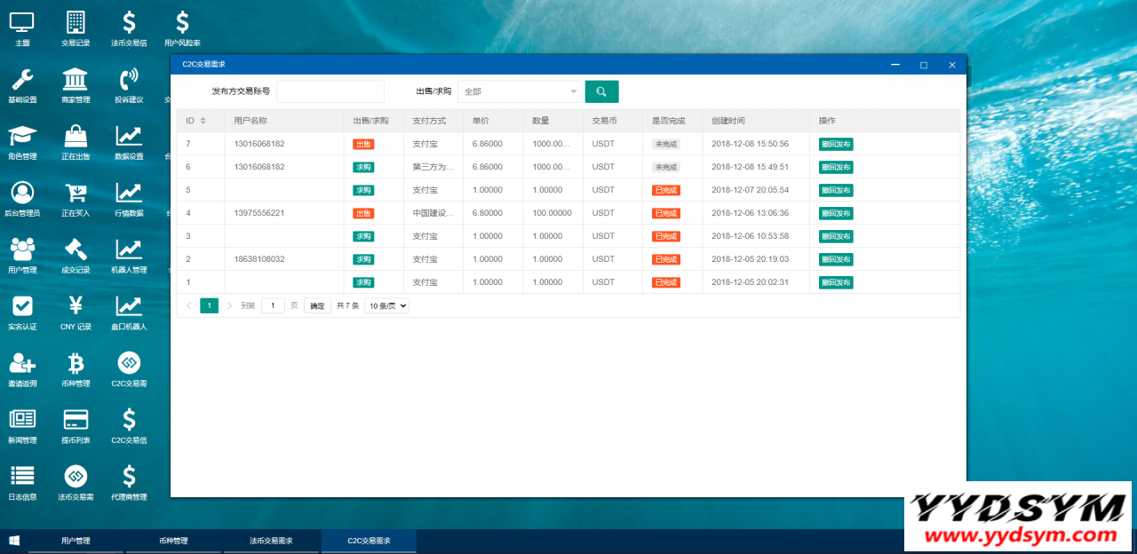 13:C2C交易管理(交易订单管理、买入信息、卖出信息)。