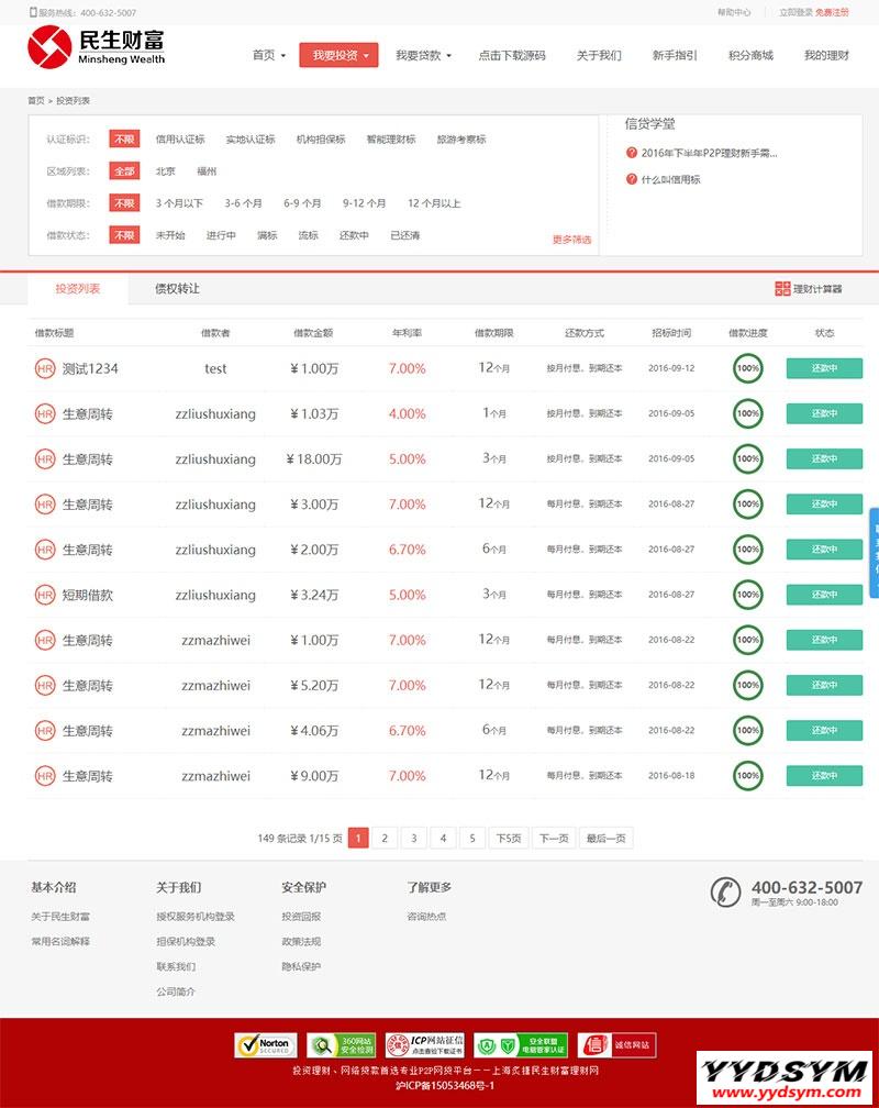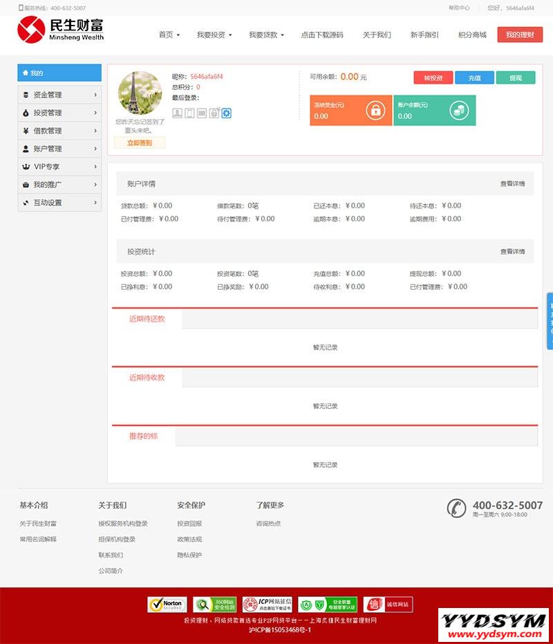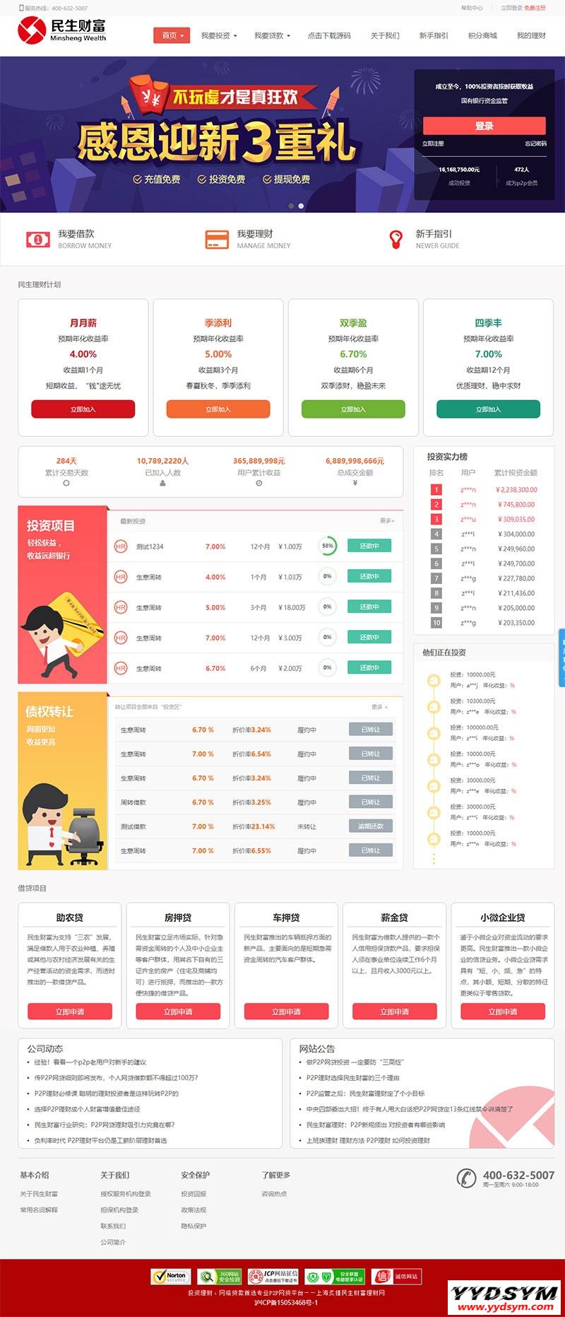 当前位置: 首页源码大全金融理财正文 简介: 方维3.4专业P2P网络贷款借贷系统投资理财平台网站源码 安装教程: 1.解压文件到根目录 2.导入数据库 3.配置数据库连接:publicdb_config.php 4.后台地址:域名/madmin.php 5.账号:admin 密码:yydsym.com 图片: 投资借贷系统投资理财系统网络借贷系统 收藏 链接