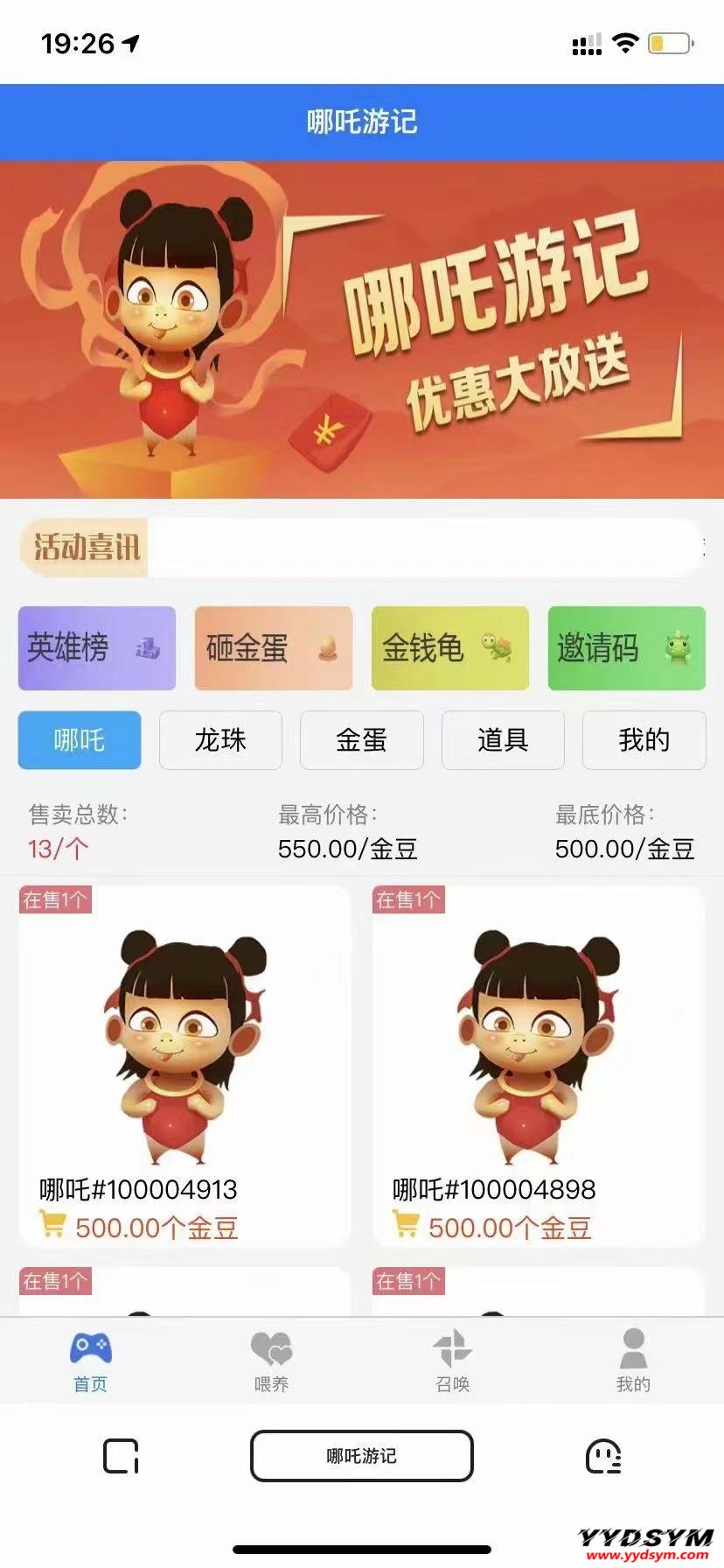 哪吒喂养召唤游记投资源码- 宠物养成类社交游戏源码