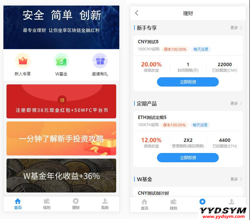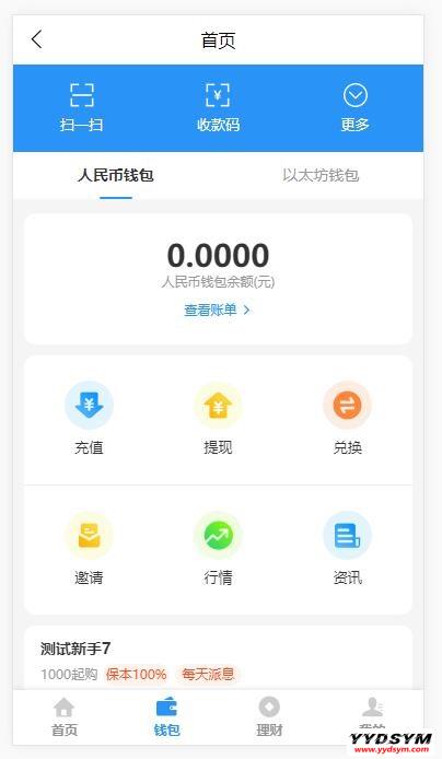 一款投资理财程序源码,可以自行添加货币。支基金产品和定期产品;可产品可设置日结或结束后结算;可设置产品是否支持赎回;可设置产品周期和封闭时间;支持设置起购金额和上线金额;支持注册新人红包功能;支持直推奖励比例;支持优惠券功能,可给指定账户发送优惠券;
