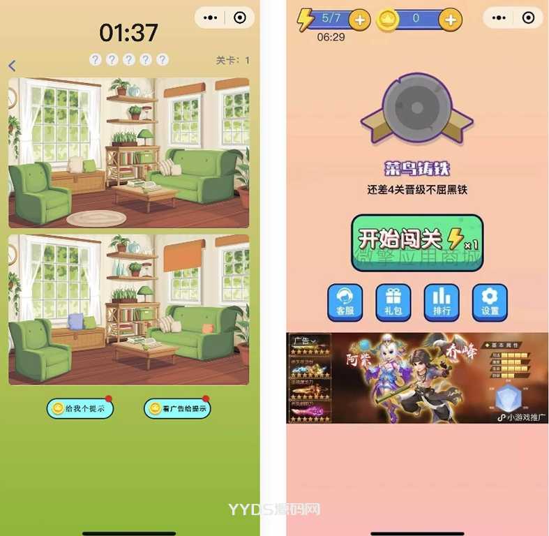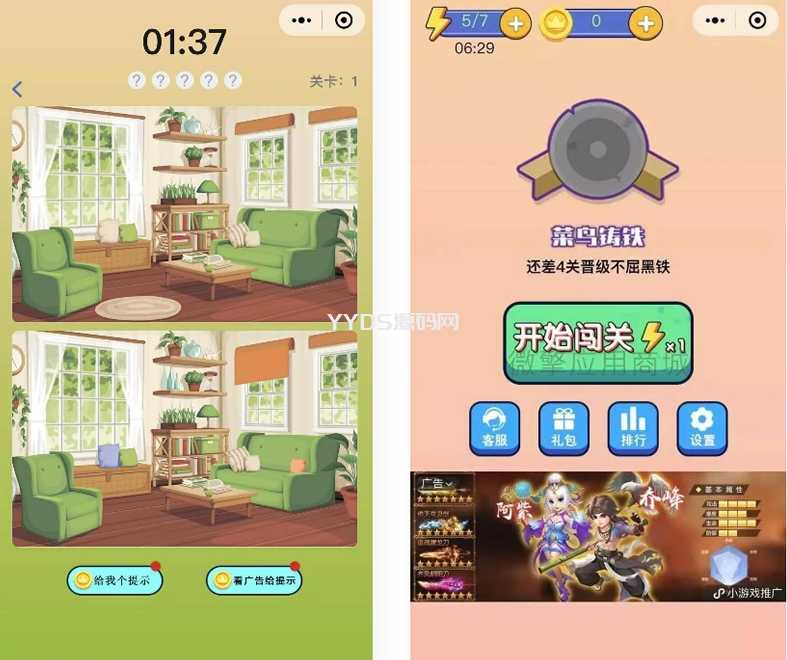 微信看图找茬找不同小程序源码 一起来找茬完美运营版