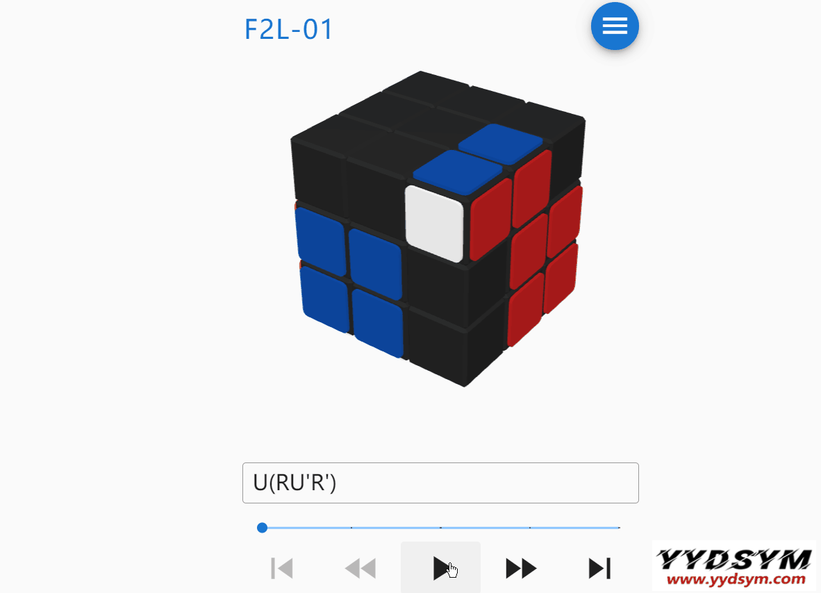 在此模式中,你可以通过学习不同的操作指令的旋转方式,来了解魔方解锁教程中的公式,点击下面的播放按钮之后,就会给你演示。