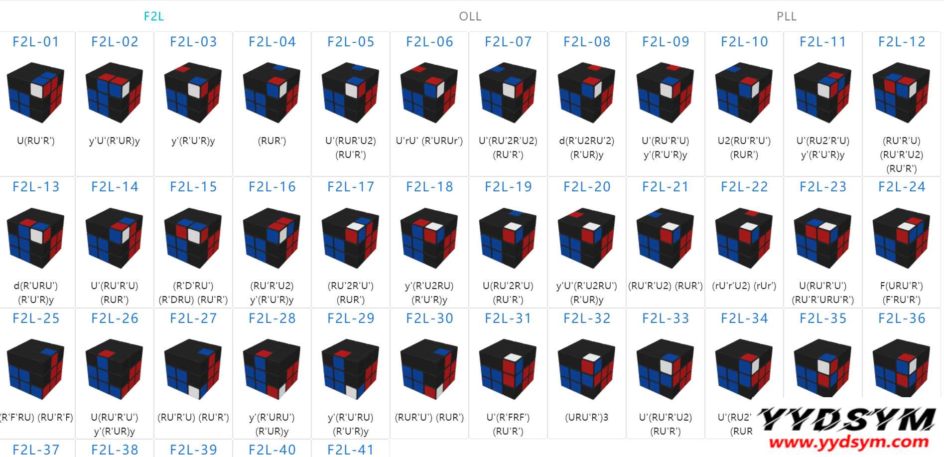 点击上方的F2L-01之后,就会显示所有的操作指令,每一种都对应了你在旋转过程中可能遇到的情景。
