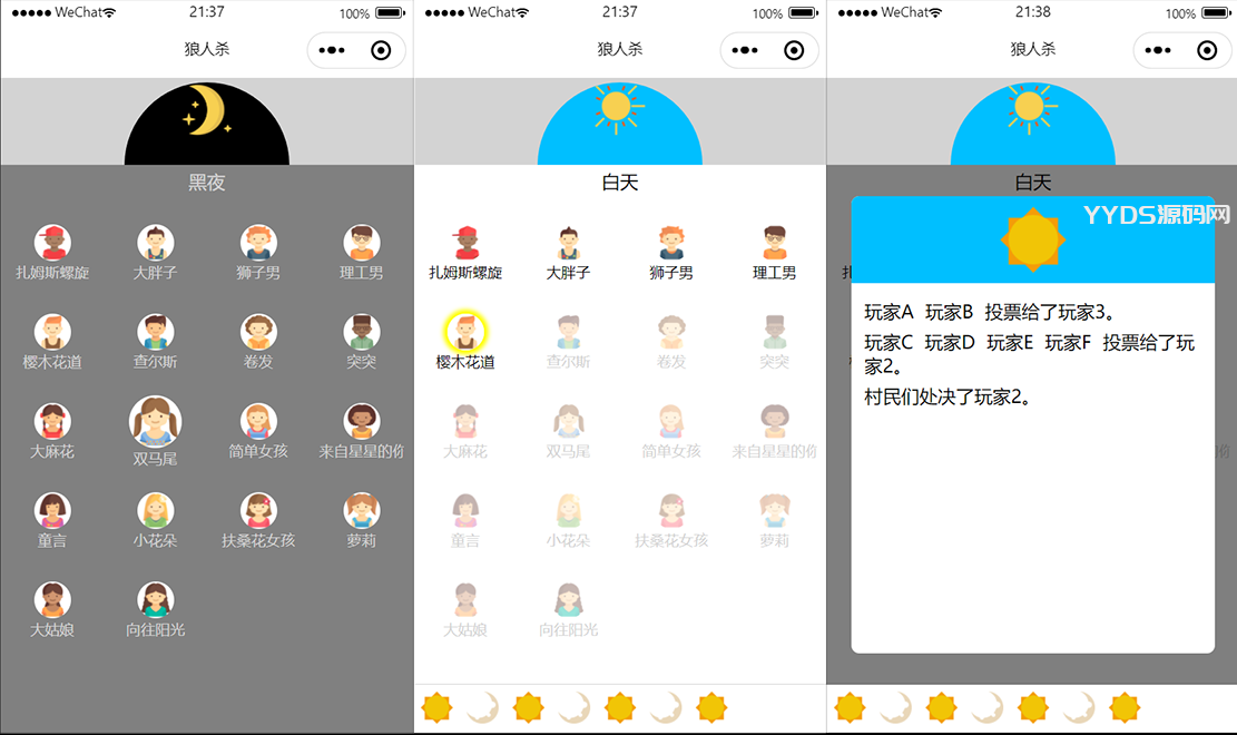 狼人杀休闲游戏微信小程序模板源码/微信小游戏源码