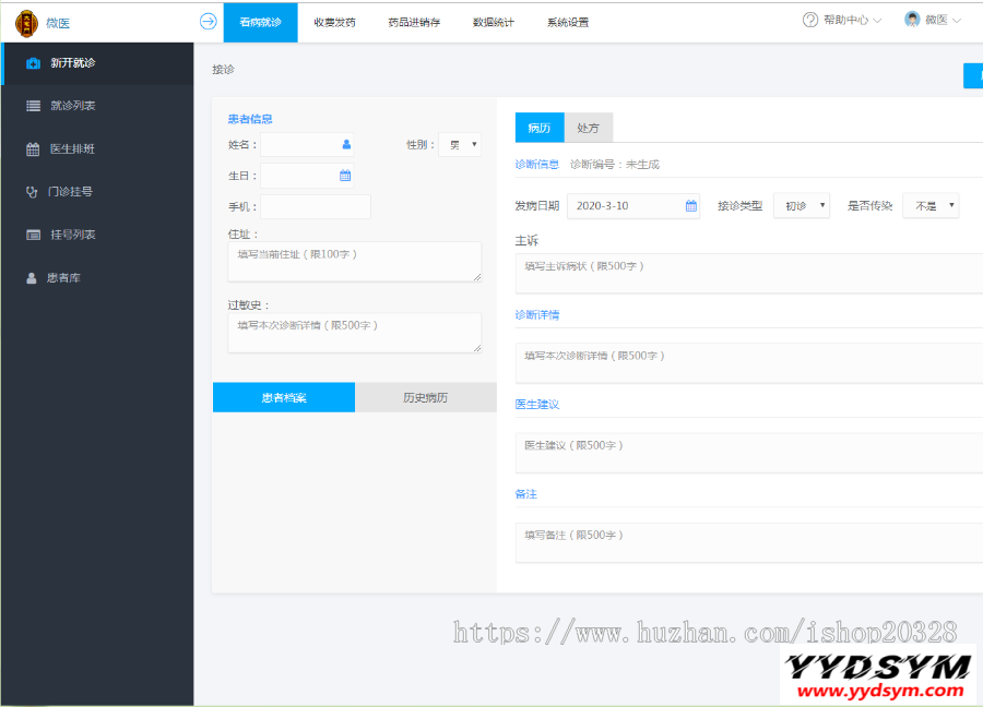 当前位置: 首页源码大全医疗健康正文 简介: 基于thinkphp开发的开发的一款医疗门诊系统源码,是一款专业用于医疗进销存数据统计的管理系统, 功能齐全,使用方便。科室管理、挂号费管理、处方附加费、检查项目费、药品管理、药品进销存、看病就诊、医生排班等功能, 数据统计功能,清楚的看出医院的一些常用数据。 图片: 医院挂号网站医疗门诊网站源码门诊挂号系统 收藏 链接