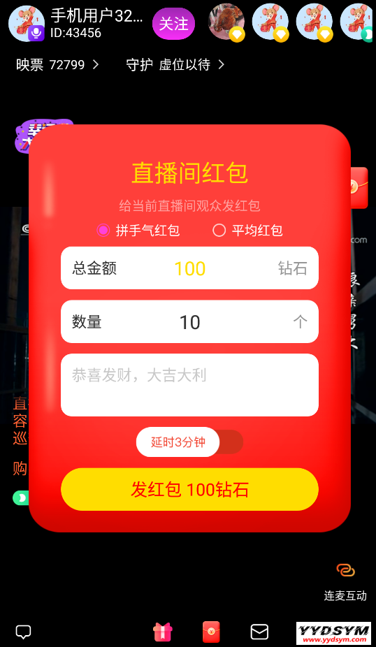 4.每日在线任务,直播间红包,直播连麦,直播pk,会员靓号坐骑