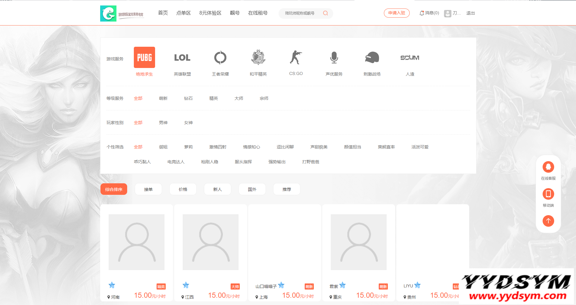 当前位置: 首页源码大全交友直播正文 简介: 游戏陪玩系统/在线租号系统/小姐姐陪玩任务系统/网游主播任务威客平台源码/绝地吃鸡LOL在线下单/带手机端/声优线上游戏任务系统网站源码 界面美观,功能齐全,已对接支付,站长亲测可用_安装教程放源码压缩包里了! 图片: 任务平台系统在线租号系统游戏任务系统游戏租号系统游戏陪玩系统美女陪玩系统 收藏 链接