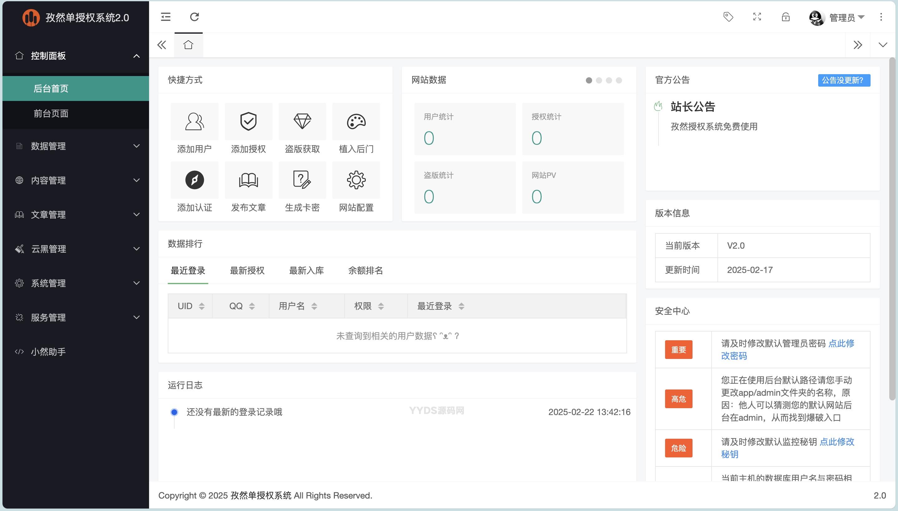 孜然单授权V2.0系统,延续了2022年开发的孜然多应用授权系统V1.0