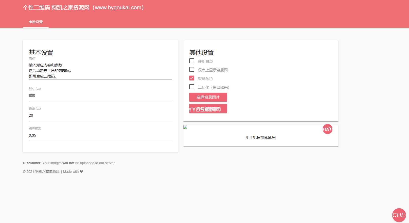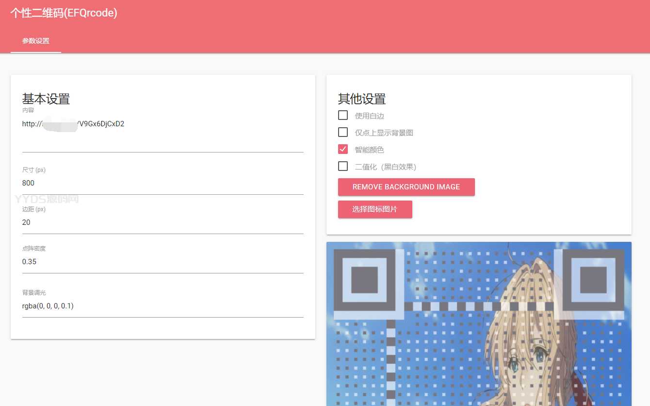 当前位置: 首页源码大全其他源码正文 介绍: Html写的一款程序,可以自定义内容生成您的个性二维码 1.支持中间图标 2.支持背景图片 使用教程: 设置二维码样式 图片: 个性二维码个性二维码生成源码个性二维码背景二维码带背景图片 收藏 链接