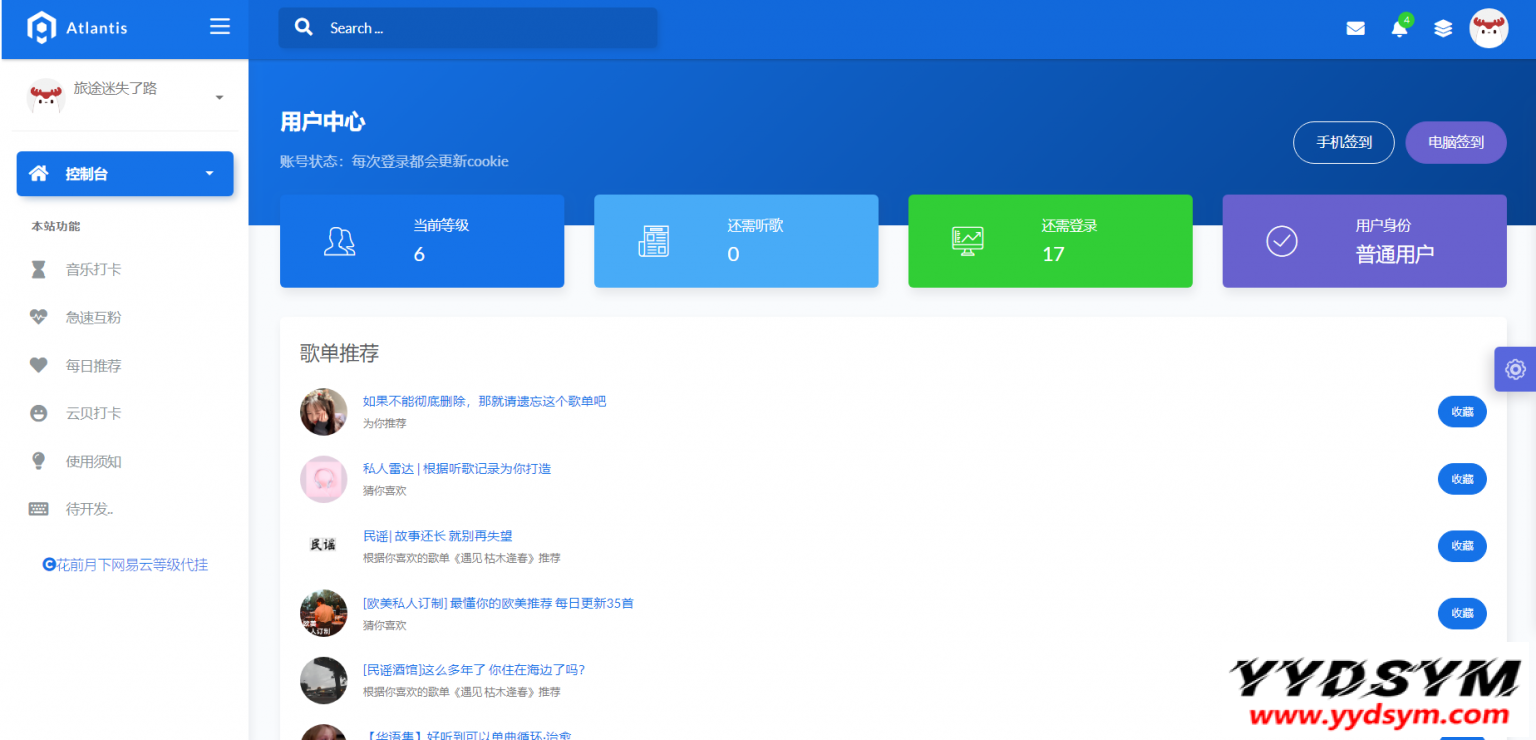 部分功能: 音乐打卡 电脑签到 手机签到 互粉 云贝打卡