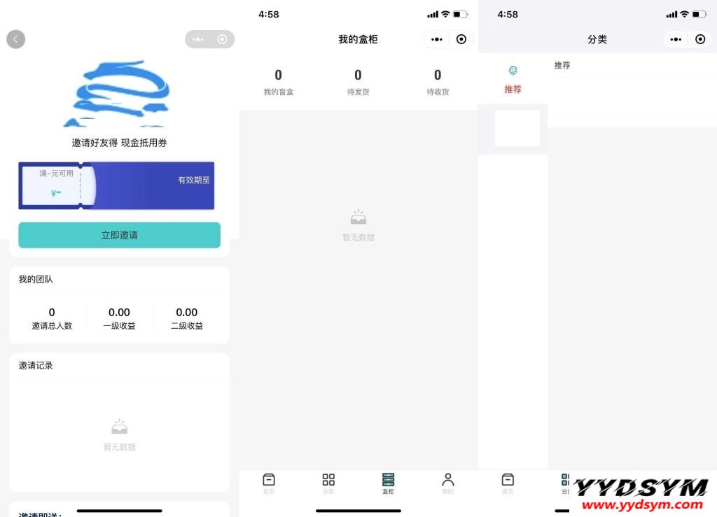 9·分销模式:分享好友赚佣金开盲盒(三级分销)可绑定优惠券;