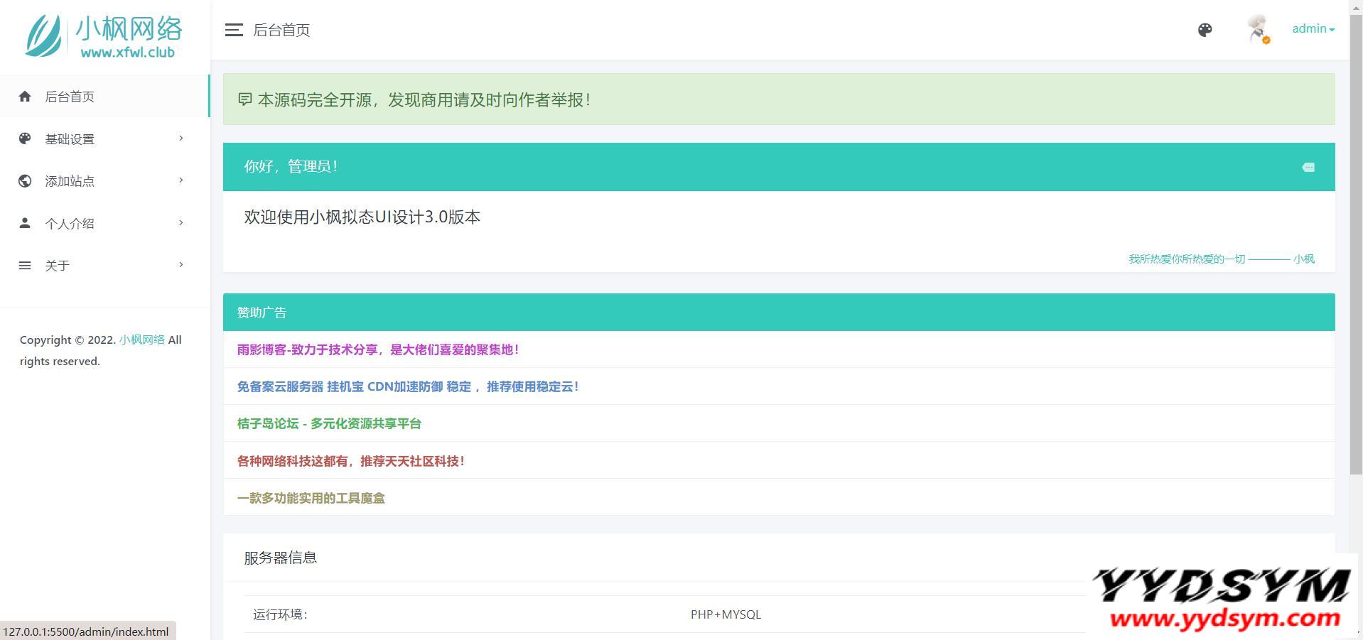 2.新建域名 PHP > 7.2 设置域名录 xiaofeng/public (关闭防跨站攻击)
