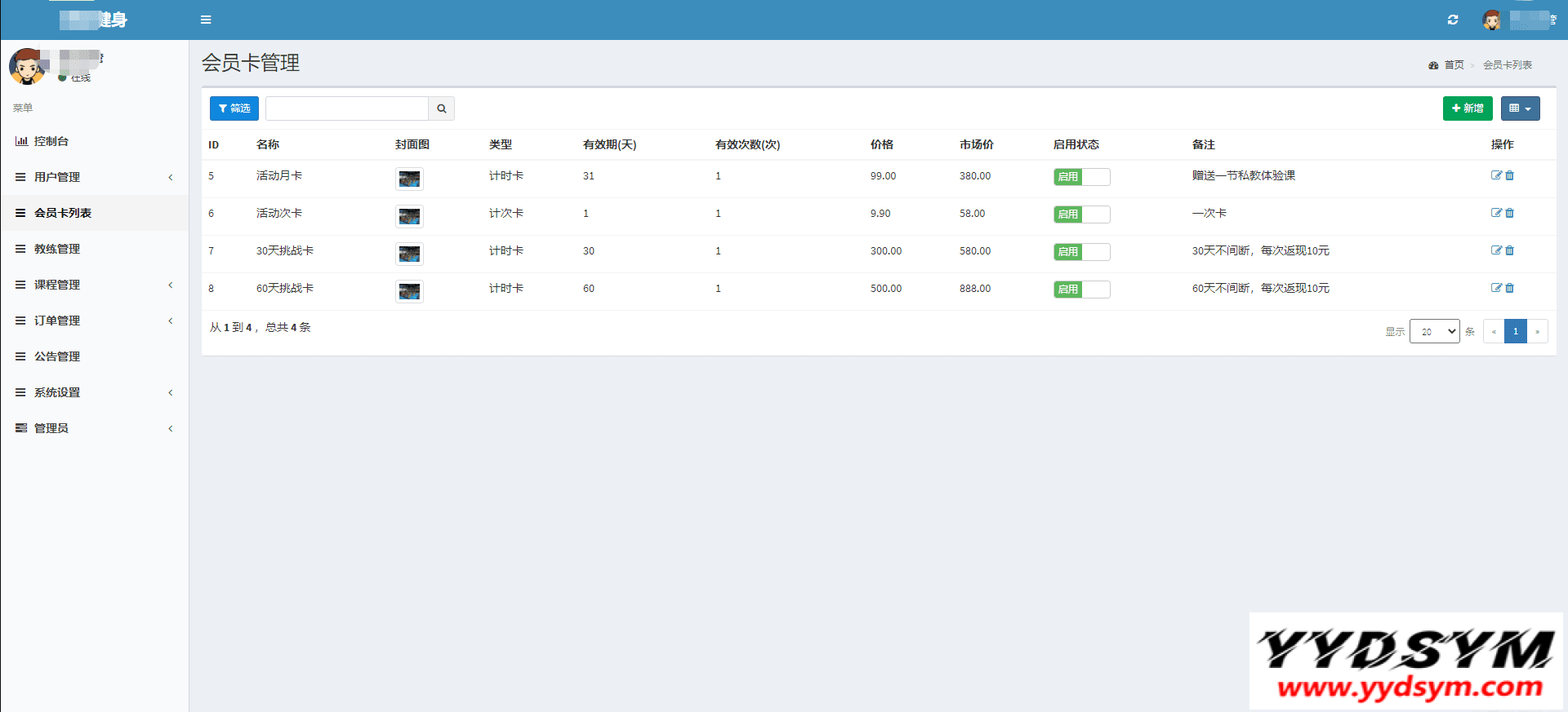 进入后台,首先到 系统设置->商户管理->驷动健身->编辑,配置 小程序id、商户id、密钥等相关信息,否则不可用