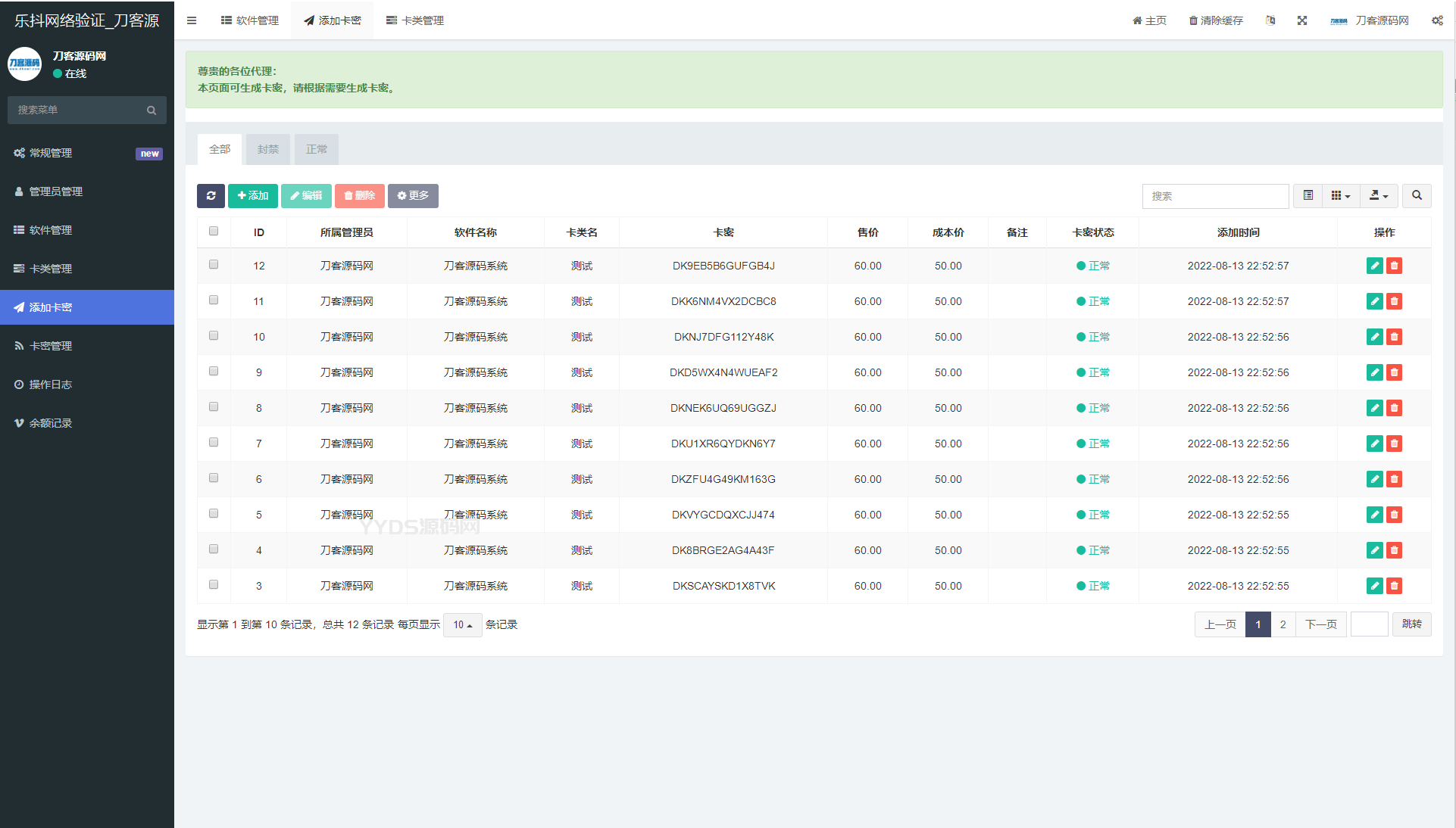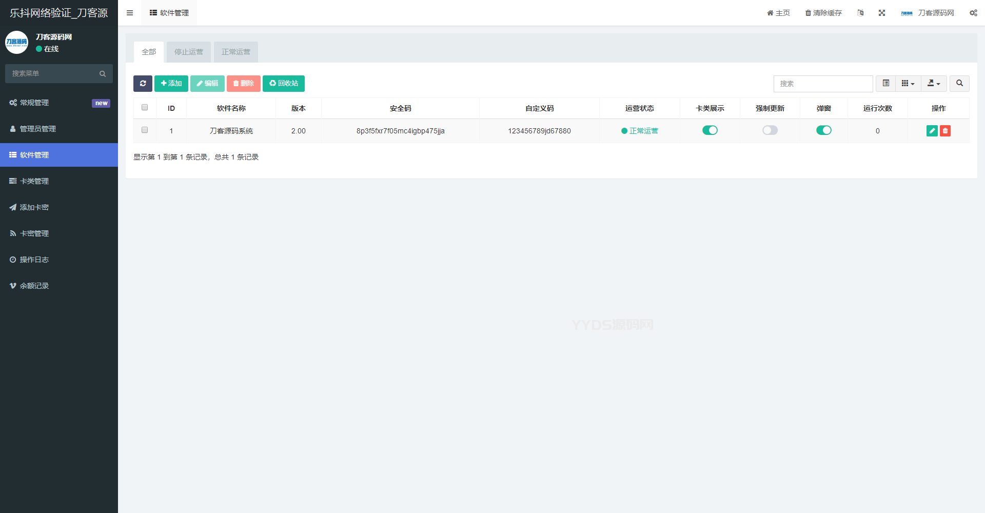 乐抖网络验证系统是目前刀客看到的最实用的一款授权系统了。