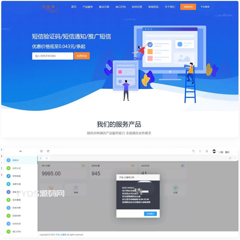 天迹•云通信SMS短信服务平台系统,短信发送系统,目前正常属于完美版,经过一系列修复现在程序已经可以完全使用。