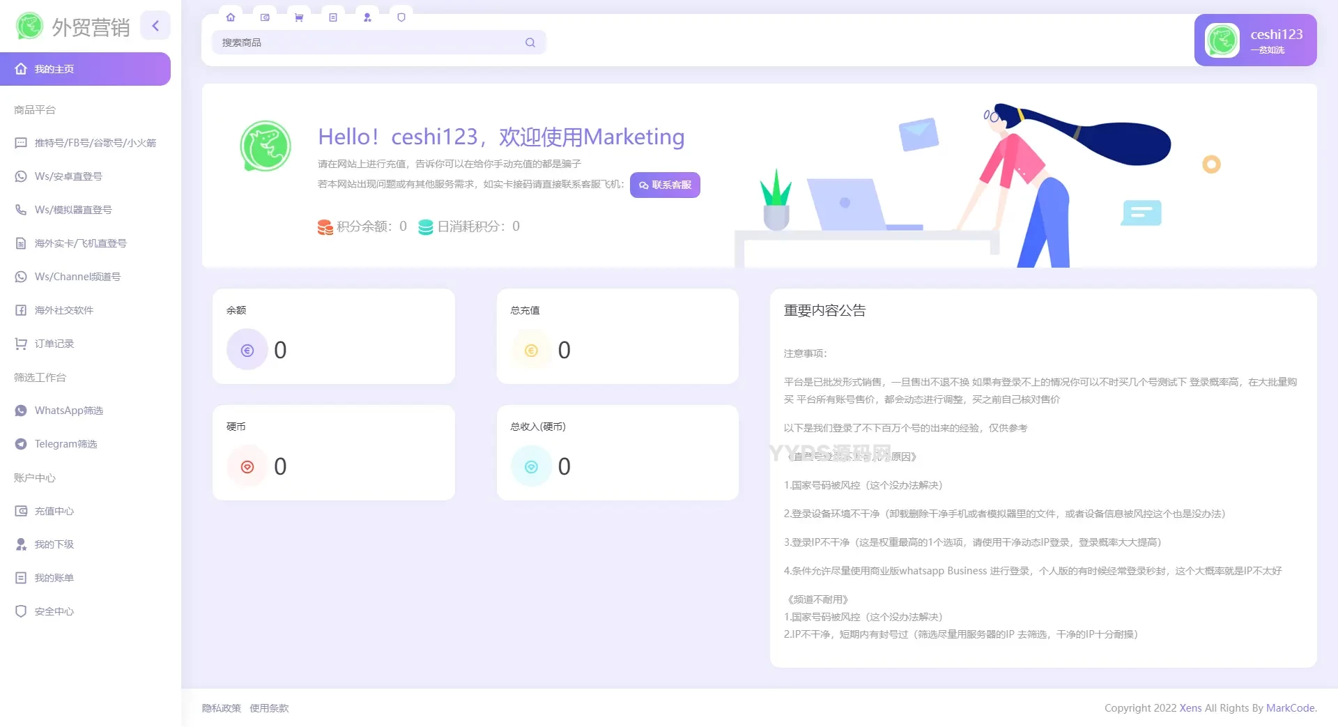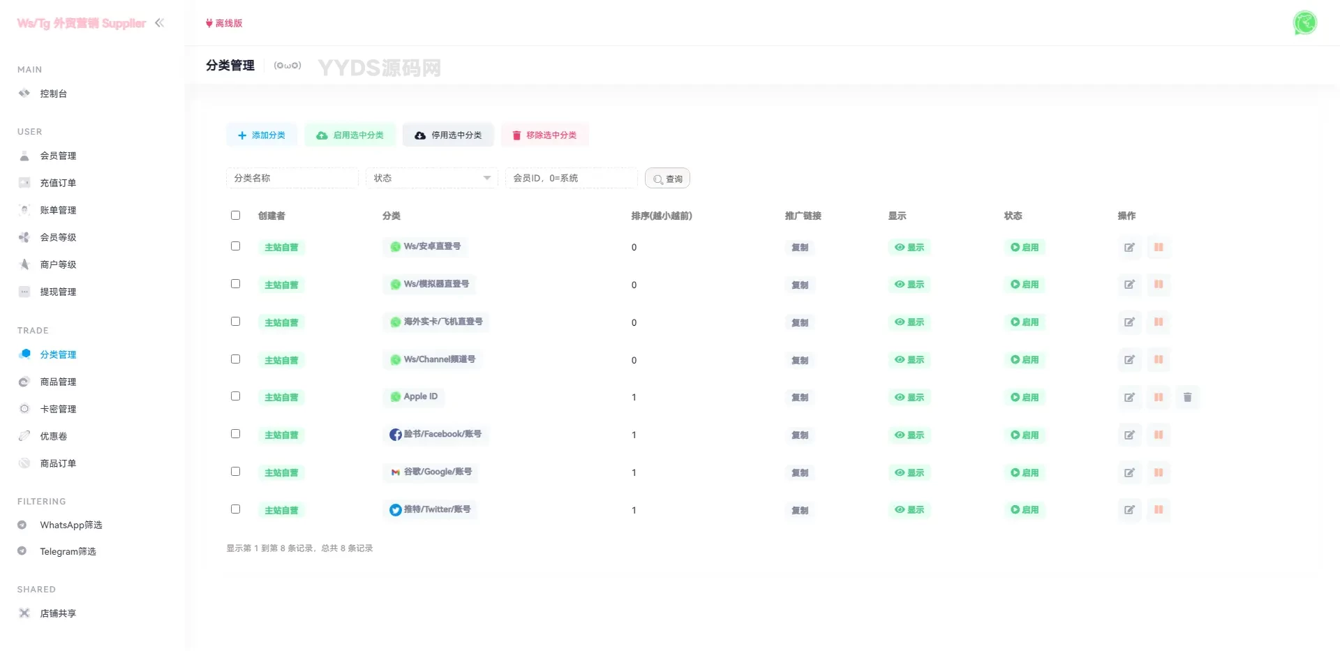 当前位置: 首页源码大全其他源码正文 简介: WhatsApp筛选Ws/Tg外贸营销Supplier推特号/FB号/谷歌号/小火箭Ws/Channel社交账号 1.后台上传各种账号前台可以下单购买 2.号码可以进行刷选查询 3.各种海外社交软件可以购买 4.可以设置分销我的下级 5.对接ustd接口 图片: Tg外贸营销WhatsApp 收藏 链接