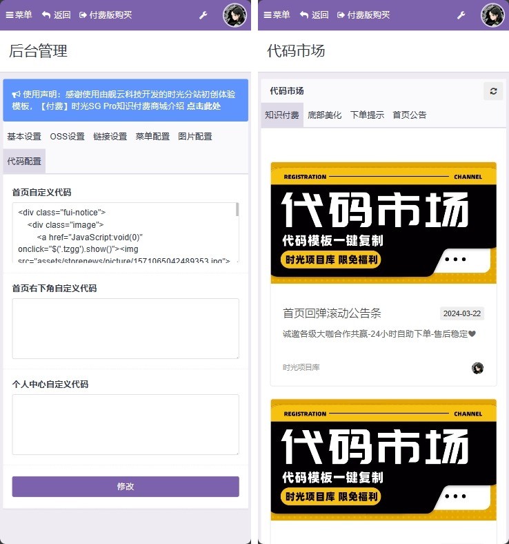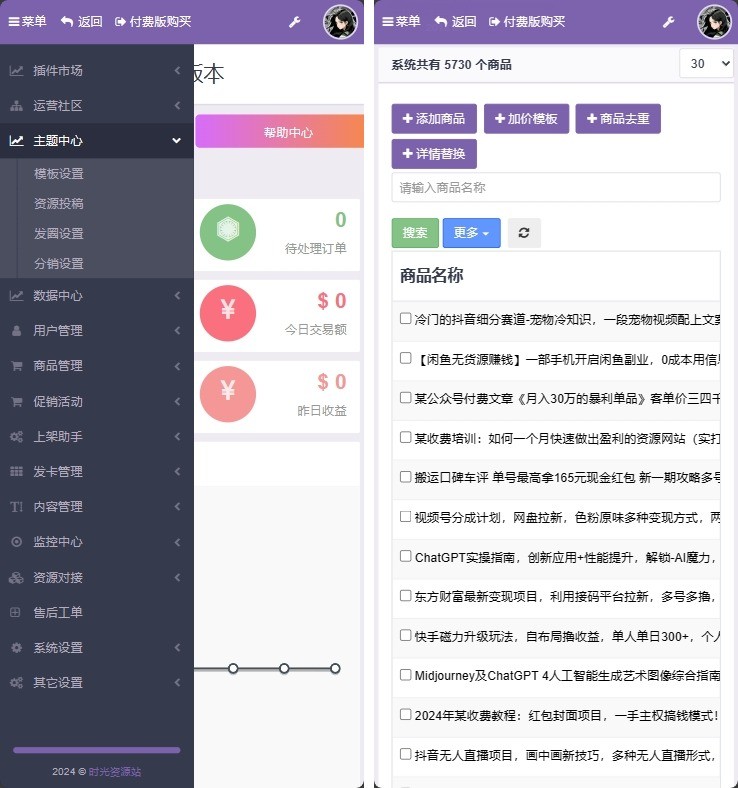 内置 最新5000条商品数据/时光插件商品,部署即可开始运营;