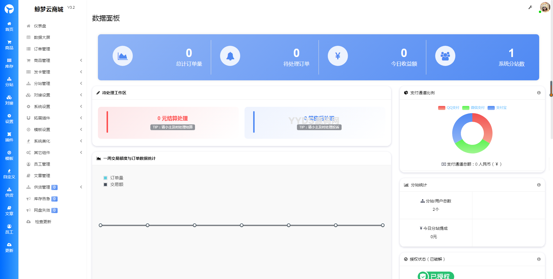 当前位置: 首页源码大全发卡系统正文 简介: PHP自助下单系统彩虹商城源码V6.6免授权版 V6.6更新日志 1.新增H5商城首页+用户中心模板 2.非发卡类商品支持库存数量设置 3.可设置分站提现的可用提现方式 4.可设置分站客服QQ全显示主站的 5.修复极限验证码绕过漏洞 6.修复邮件发送失败率高的问题 7.修复订单高并发情况下发卡错乱的问题 8.新增批量对接商品功能(仅支持同系统系统对接) 9.优化后台提现管理页面 10.更新后台易支付免认证 图片: 收藏 链接