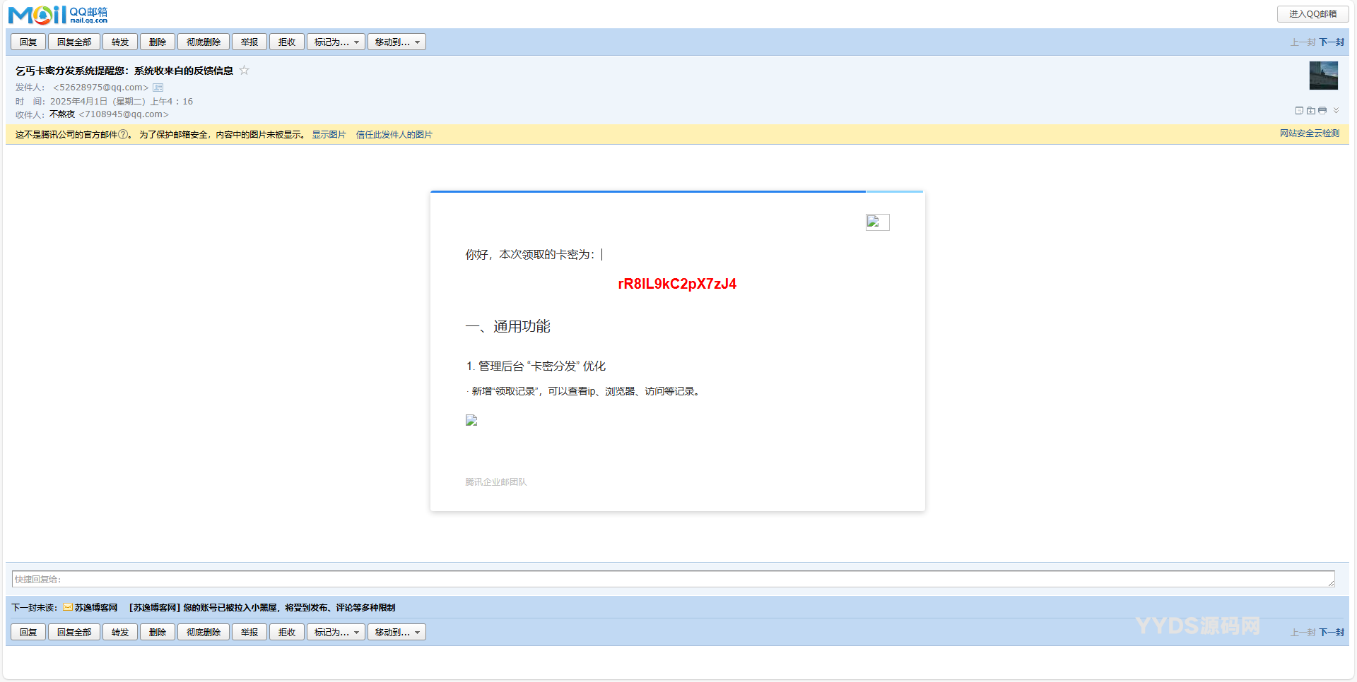 - 卡密通过邮件形式发送到对方邮箱,邮件模板可以自己进行替换