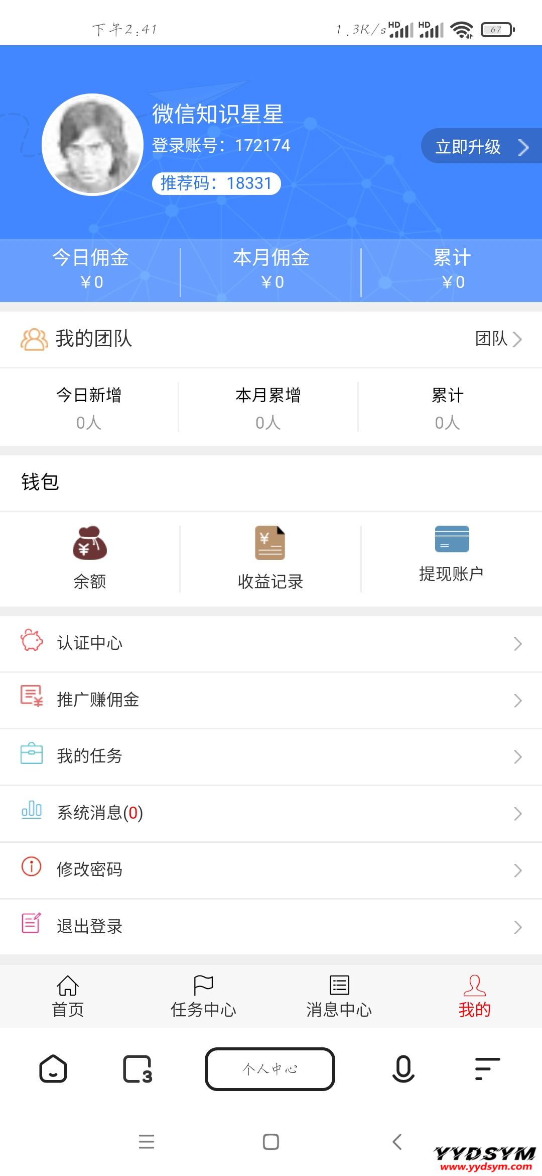带第三方个人免签支付,支持VIP等级充值、在线支付(微信和支付宝)、推广分销、用户提交任务、我的团队等
