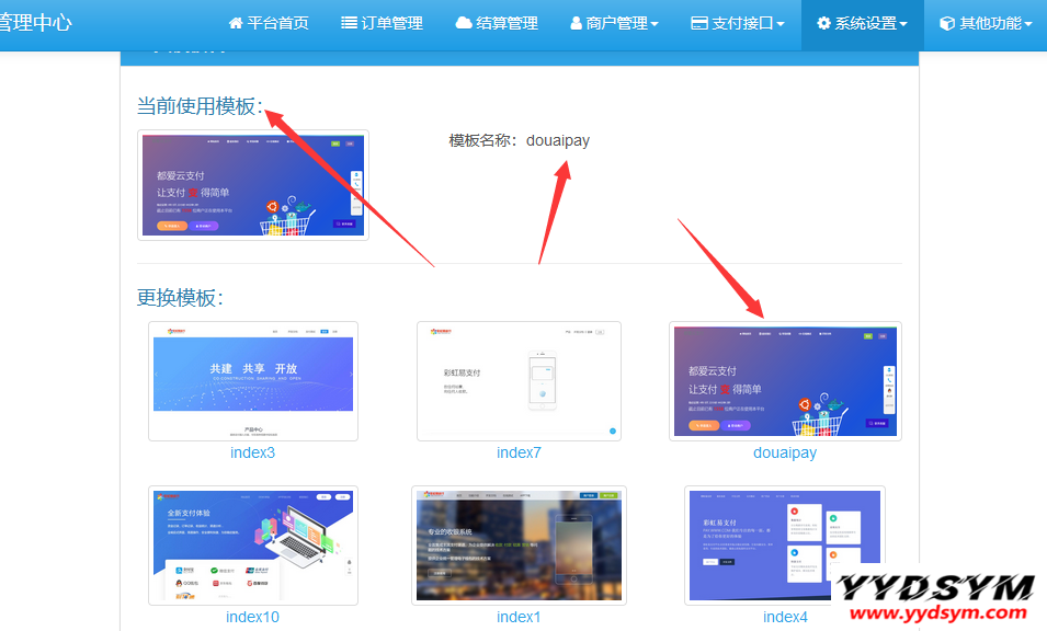 2.上传后我们点击解压,然后登录你的支付后台,找到模板选择(douaipay)