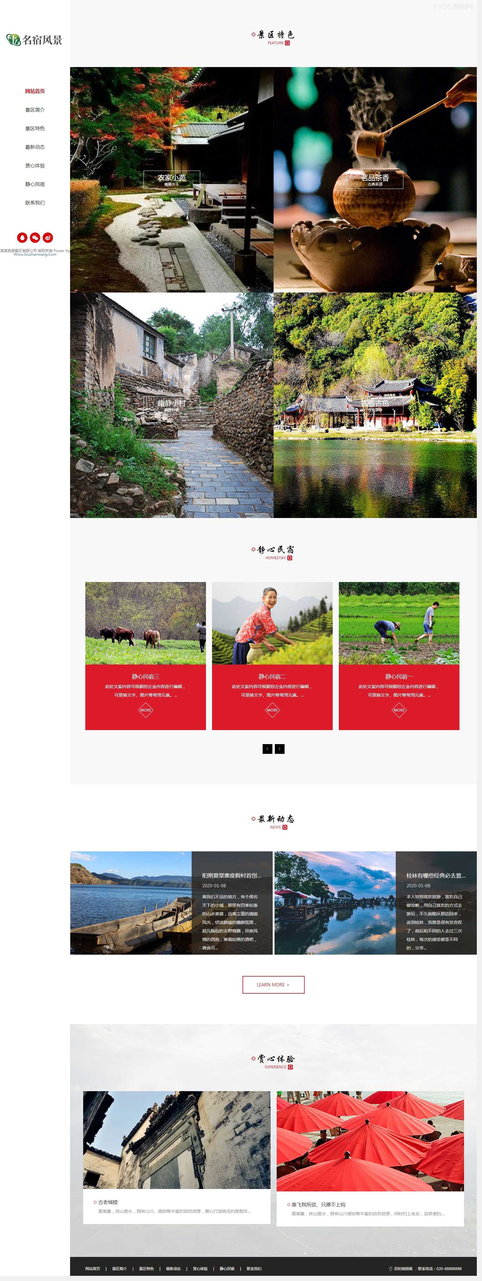 3、适用于民宿景区网站模板、旅游景点网站源码;