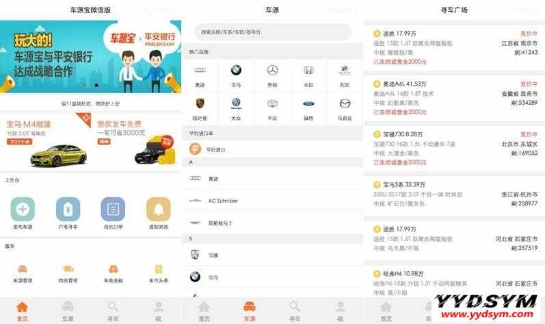 当前位置: 首页源码大全交易平台正文 简介: 微信小程序源码仿《车源宝》在线汽车交易平台系统实现车源宝客户端部分功能,包括首页,车源,寻车,登录等页面。车源宝微信小程序前端源码 图片: 车源宝小程序 收藏 链接