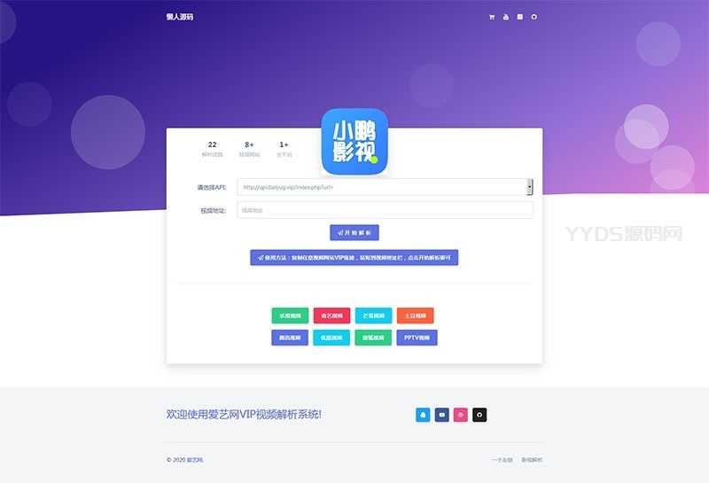 当前位置: 首页源码大全视频音乐正文 简介: 上传源码到服务器,访问即可使用,无需数据库 没有限制为了界面美观,不添加播放器,跳转到解析接口页面 解析接口是网上找的,可以自己在index.html替换。 图片: 爱艺 收藏 链接