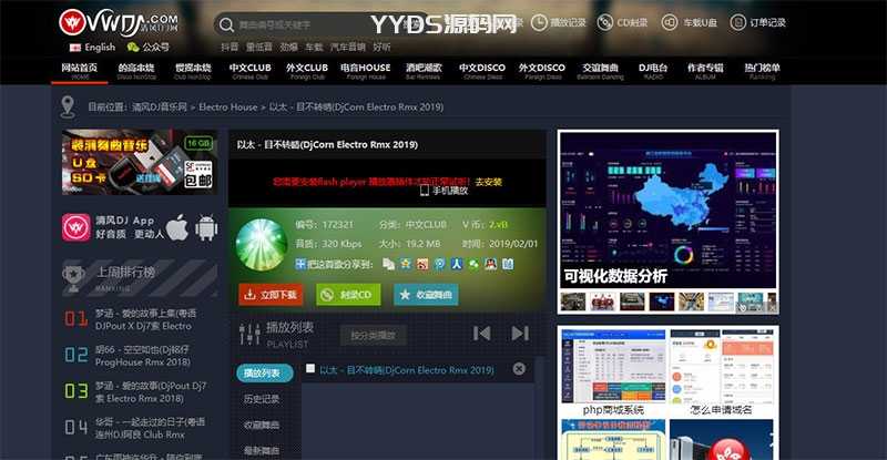 当前位置: 首页源码大全视频音乐正文 简介: CSCMS V4.1仿清风dj舞曲网音乐网站源码,程序是CSCMS V4.1 UTF8编码,其中不包含清风dj舞曲网的CD、刻录、U盘、购物车等功能。 安装说明: 需要修改一下代码里面的域名找这个文件 /cscms/config/sys/Cs_Config.php define(‘Web_Url’,’这里面填你自己的域名’); //站点域名 需要修改一下代码里面的域名 如果还不能安装试下 需要重新安装 请先删除./packs/install/install.lock文件 图片: CSCMS系统清风dj舞曲网舞曲网源码音乐播放器音乐网站源码 收藏 链接