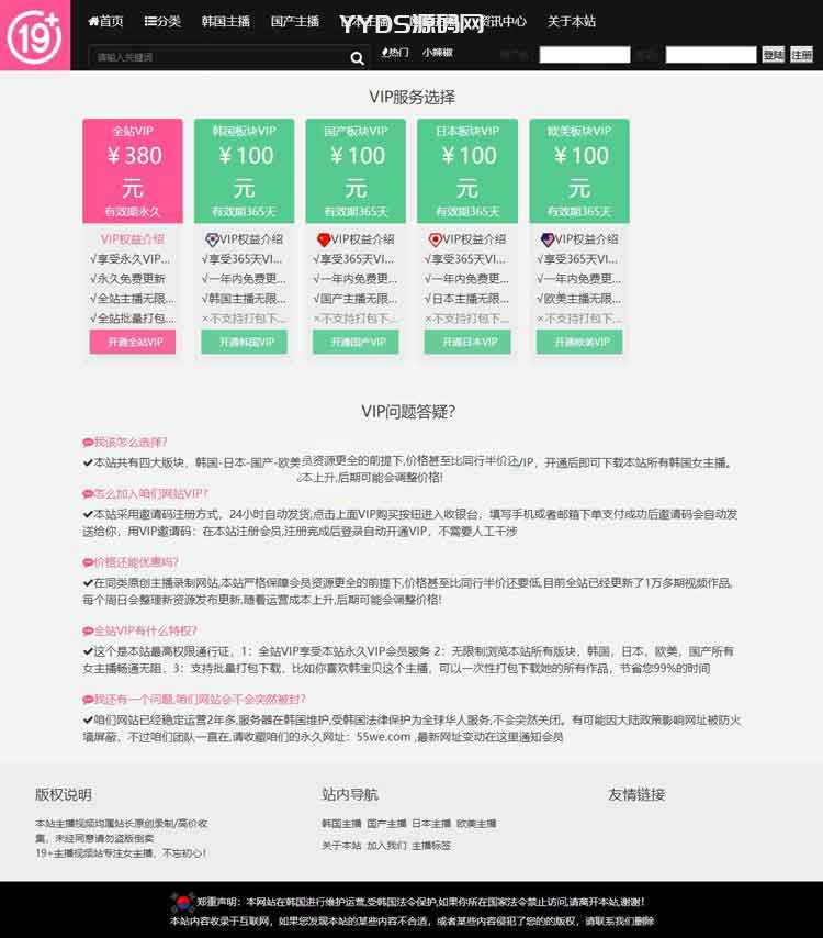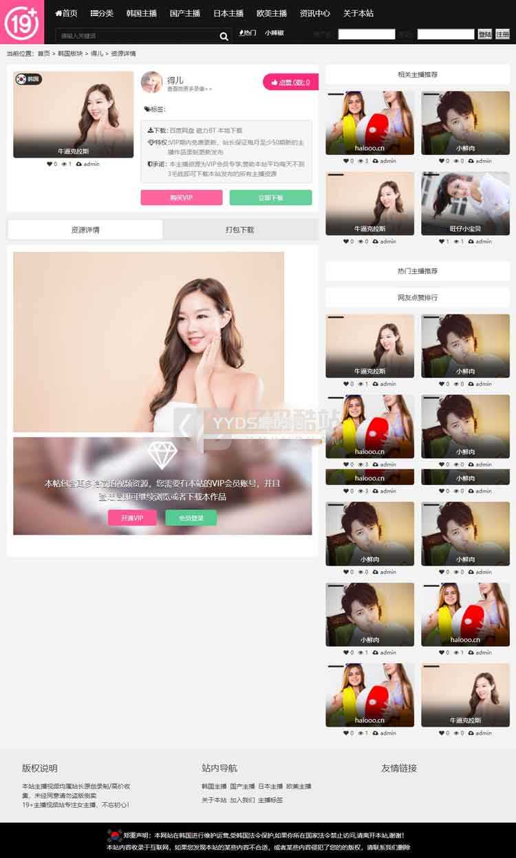 当前位置: 首页源码大全视频音乐正文 简介: 程序自带VIP系统,批量点卡生成功能,无bug运营版 CMS帝国系统 韩国女主播视频网站支持PC电脑版+wap手机版本 可封装APP轻松运营,帝国稳定内核二次开发, 自带会员系统+点卡系统,无错无bug,可直接用于运营! 网站截图 主播视频网站 收藏 链接