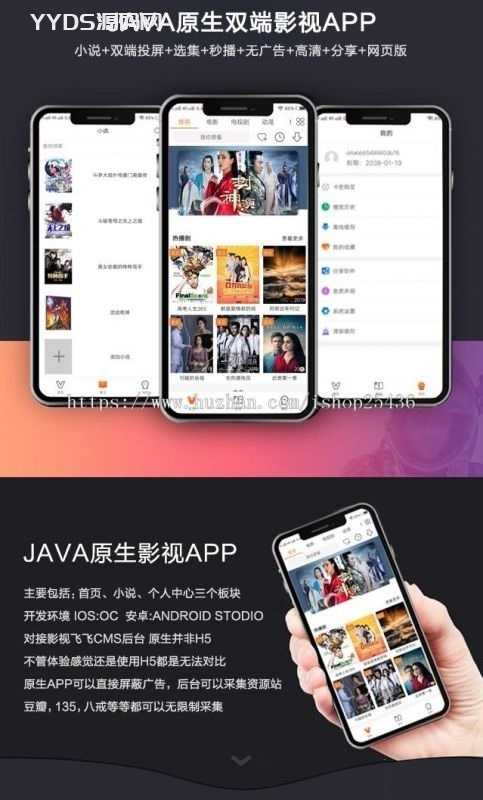 对接苹果CMS后台 原生并非h5 不管体验感觉还是使用h5都是无法对比的。天镶之别。修复了之前网上流传的只能播放m3u8的毛病!本源码可以屏蔽解析的广告!
