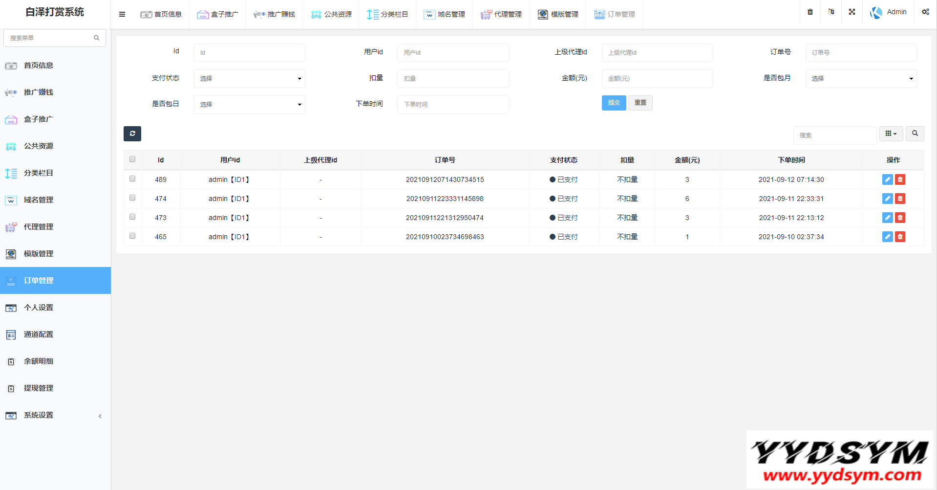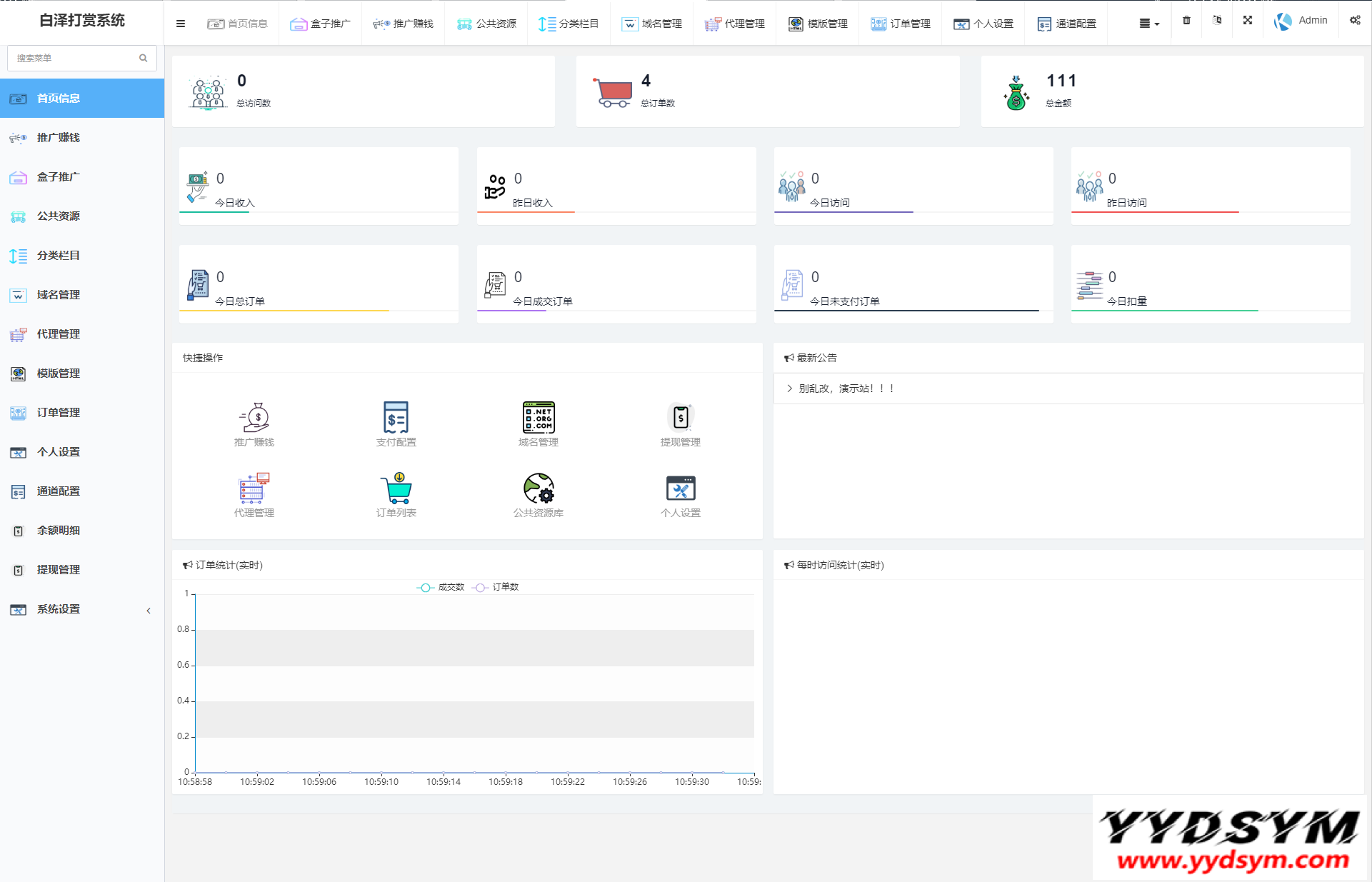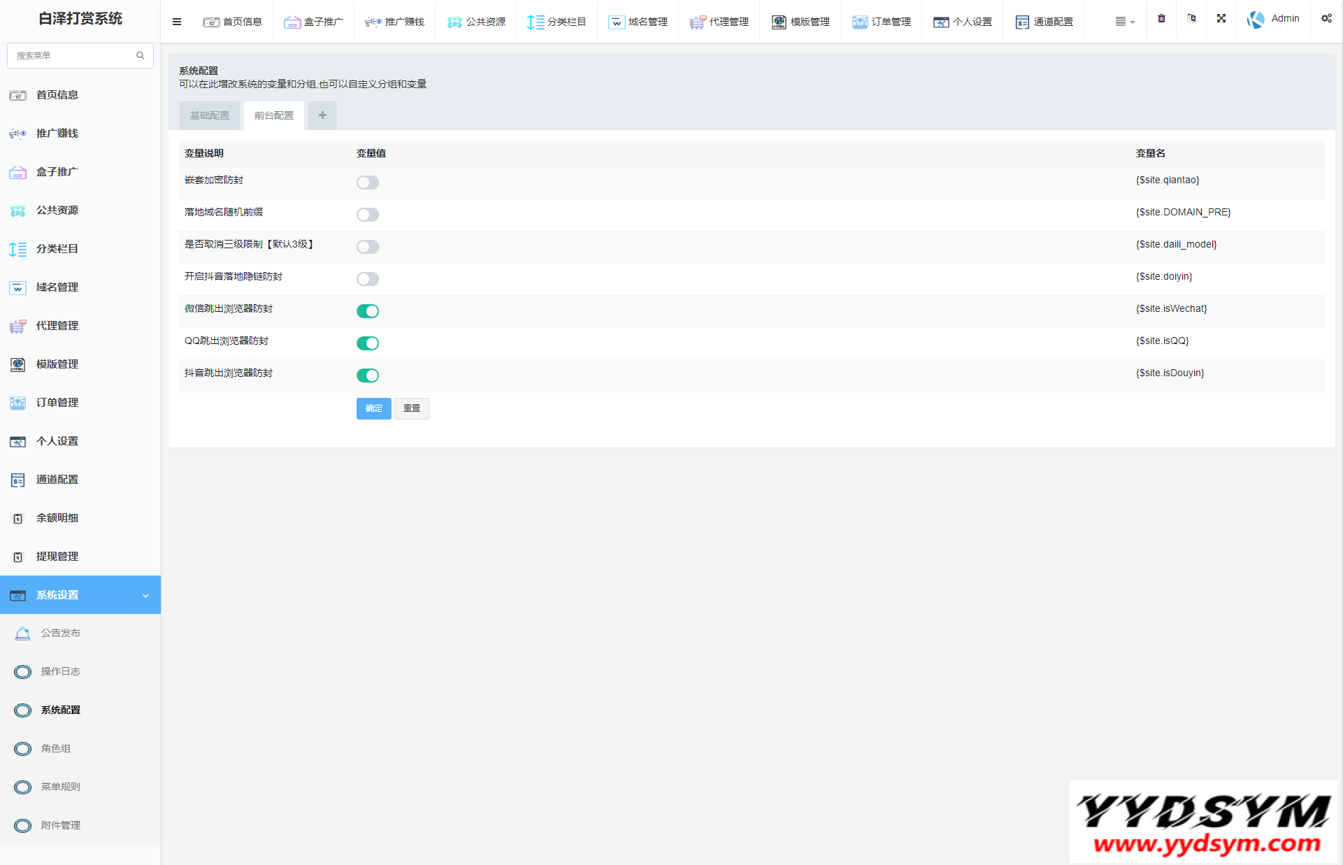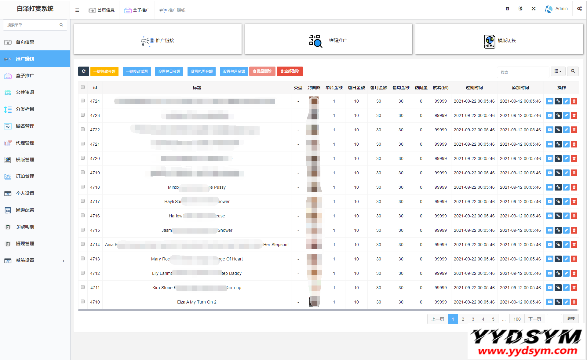 当前位置: 首页源码大全视频音乐正文 简介: 图片为实测截图,支付对接,盒子推广,域名防封,等一系列功能皆为正常 用途就是,比如,你要看视频,就得支付,可以包天,包周,包月 前台截图就不发了,懂得都懂 后台账号密码:admin/yydsym.com 本程序仅供研究学习使用,切勿商用以及违法运营! 图片: 付费打赏系统视频打赏系统 收藏 链接
