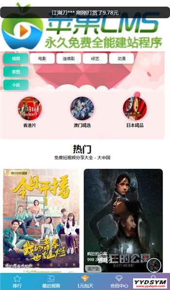 苹果cmsv10最新初恋视界手机版模板,互站花钱淘的,已测试完美无错,带会员中心。