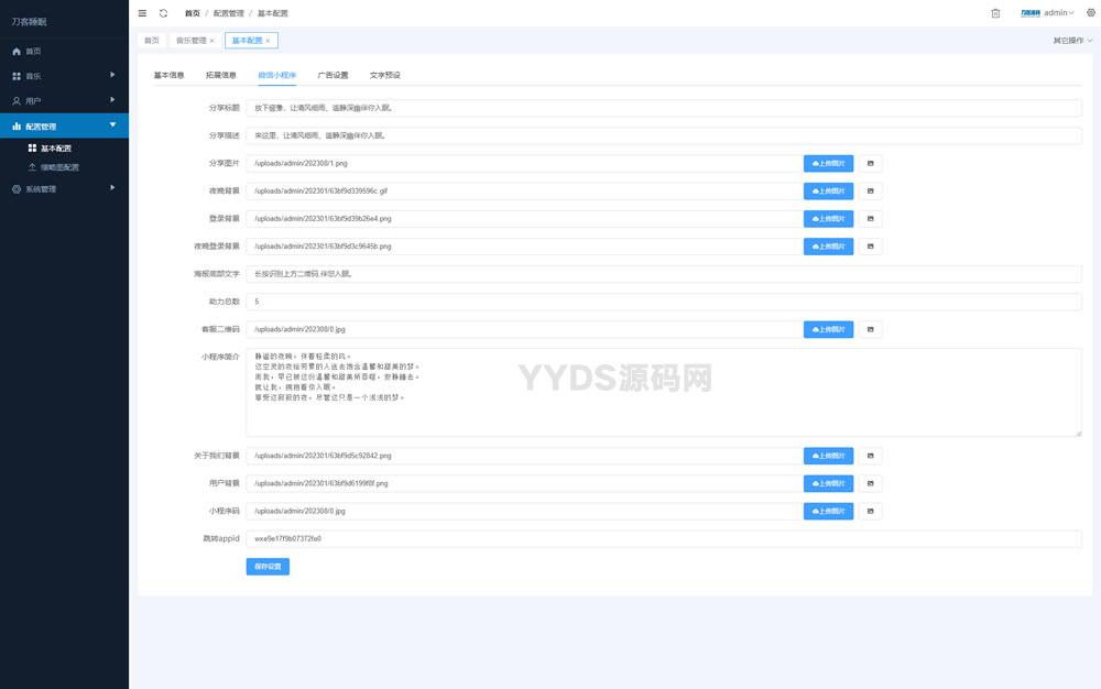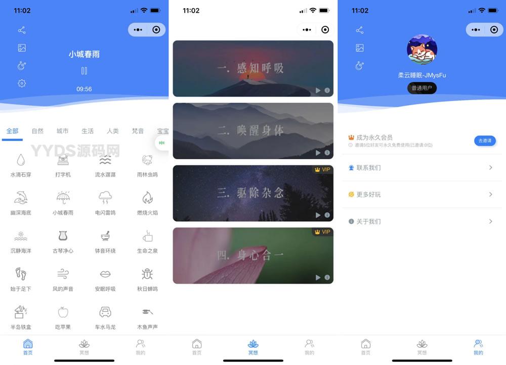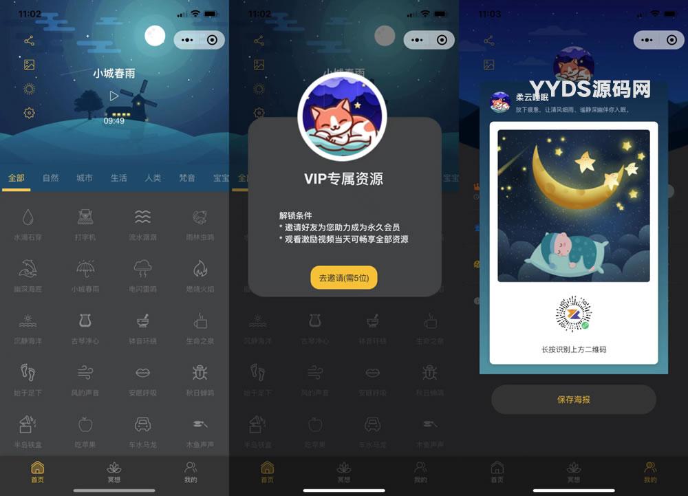当前位置: 首页源码大全视频音乐正文 简介: 睡眠助手/白噪音/助眠夜曲微信小程序源码 附教程 支持分享海报 支持暗黑模式 包含了音频数据 最近很火的助眠小程序,前端vue,可以打包H5,APP,小程序 后台可以设置流量主广告,非常不错的源码 代码完整 完美运营 搭配无人直播挺好的 具体请看下方演示小程序 图片: 助眠夜曲助眠小程序白噪音白噪音小程序睡眠助手 收藏 链接