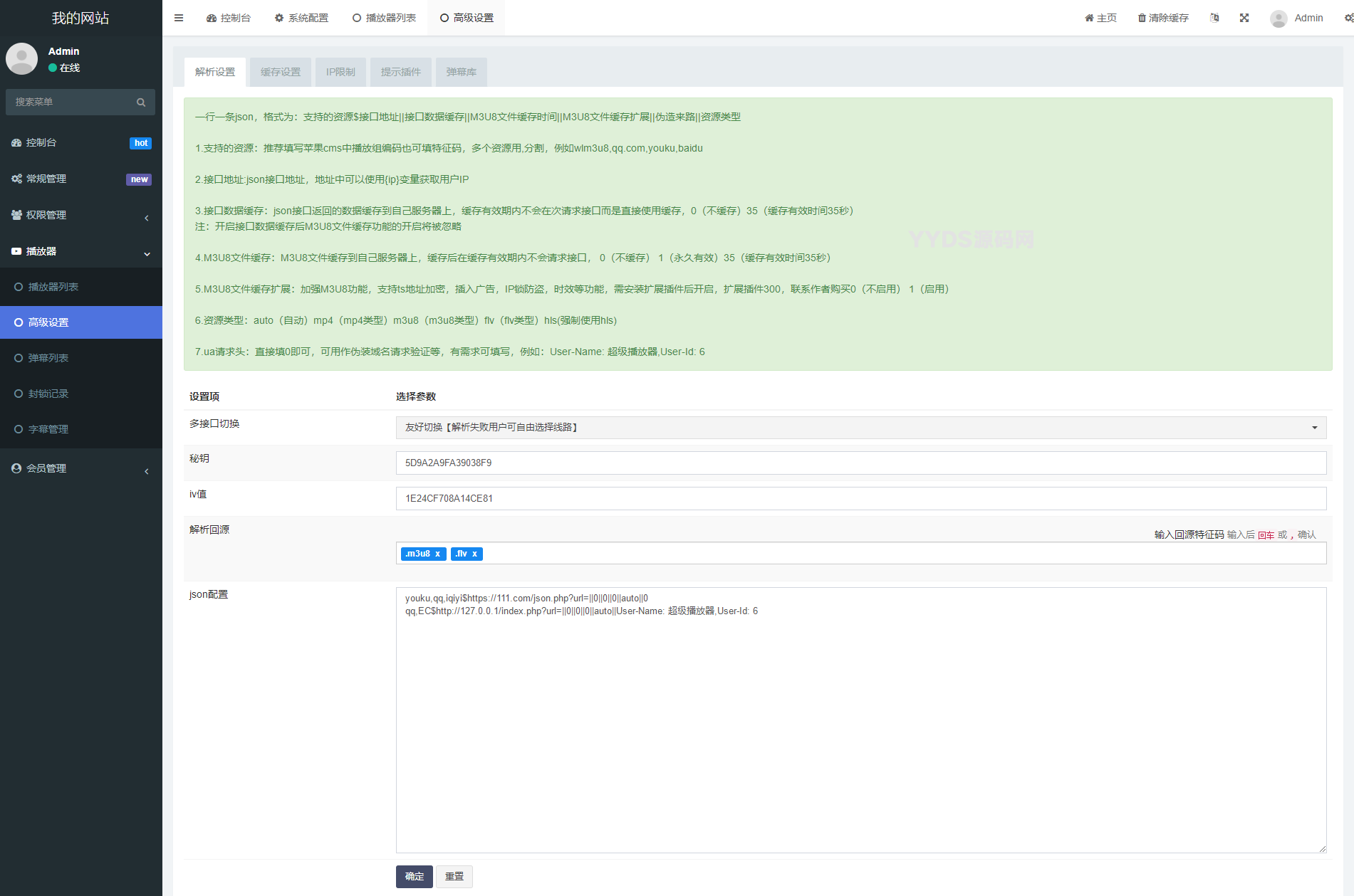 但还需要设置,就是key,iv要与播放器后台-播放器-高级设置里面的保持一致,否则切换选集后播放失败